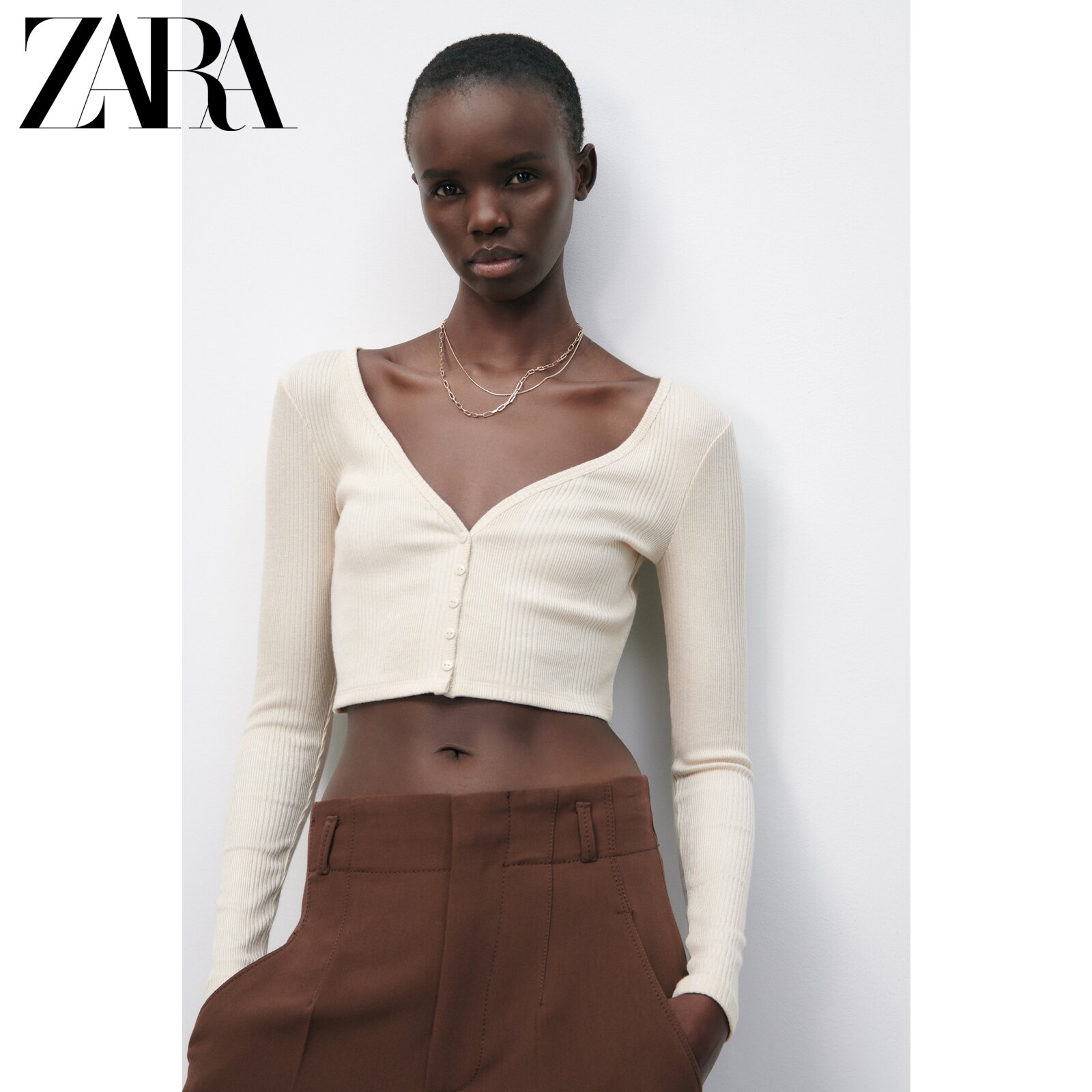 ZARA Summer New Women's Fashion Rostrix V Collar Long Sleeve Short jacket 5039015712