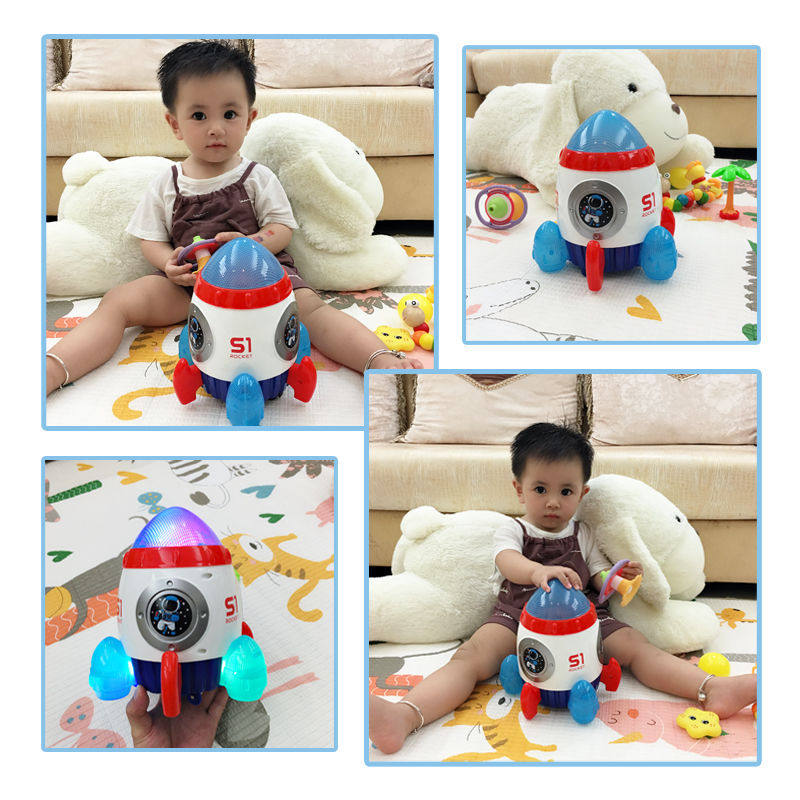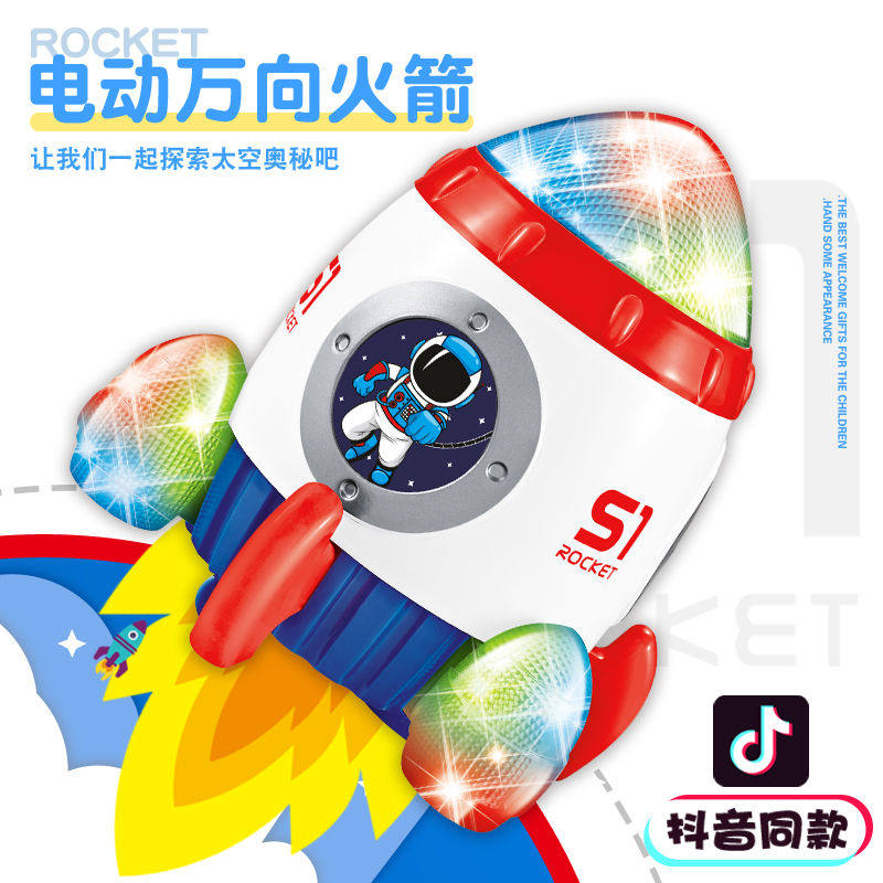 Baby electric toy flash music rocket model children net red astronaut lift rotating universal car lantern