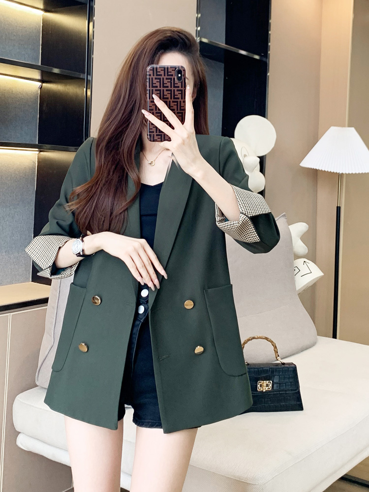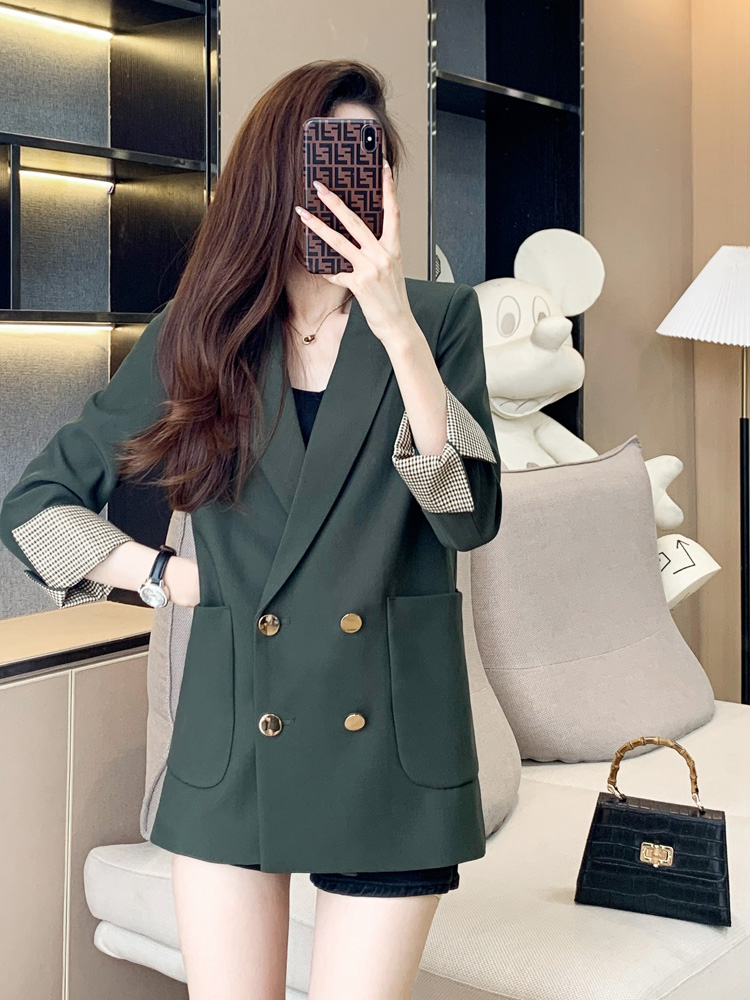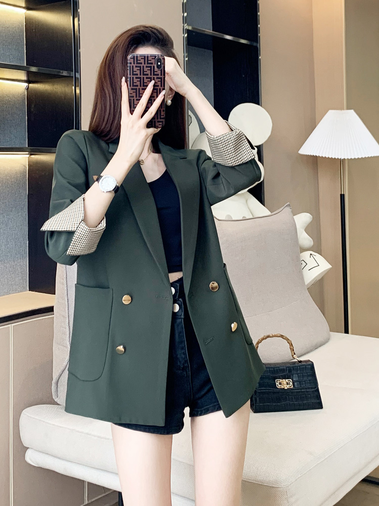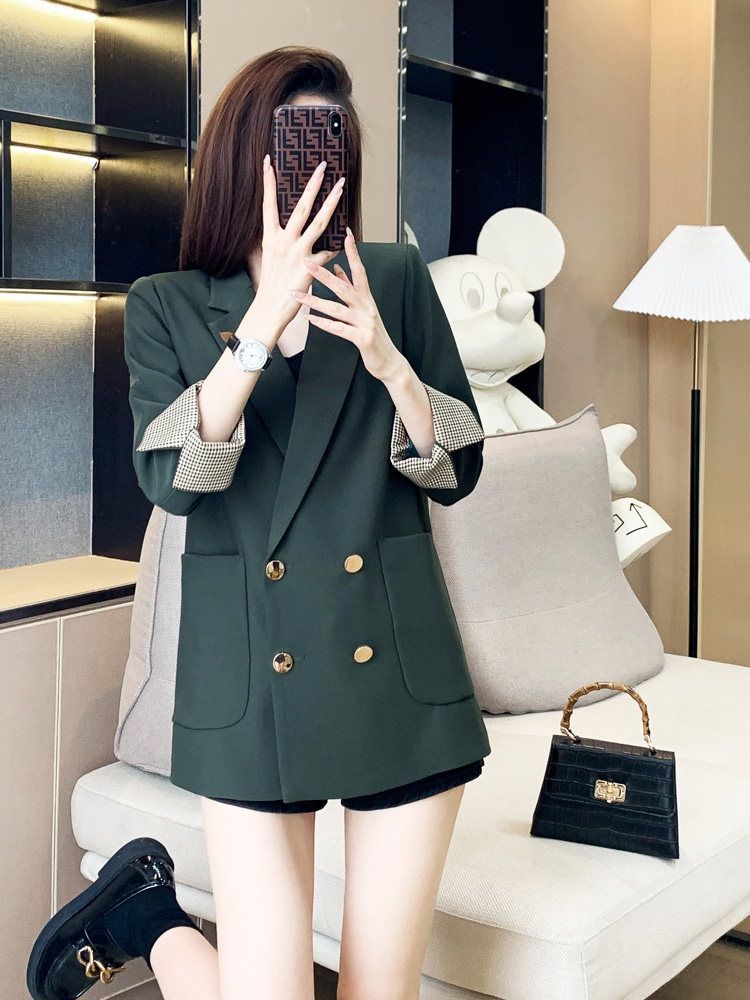 Net red dark green suit jacket female autumn 2022 new fashion temperament casual loose small retro suit