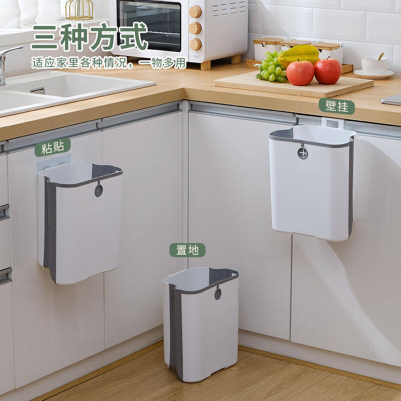 New home kitchen trash can wall-mounted multifunction folding trash can large capacity simplicity and easy cleaning