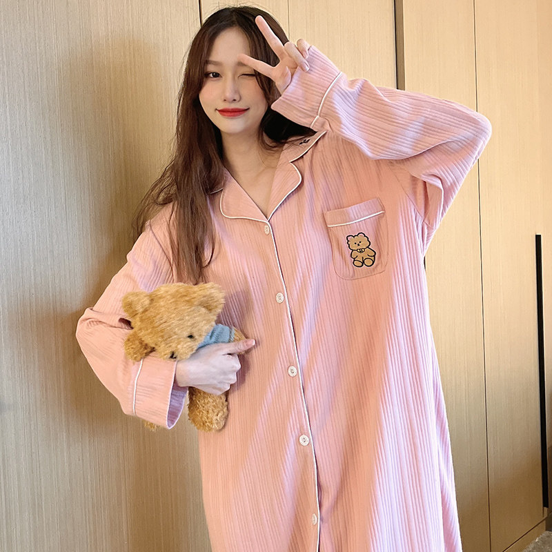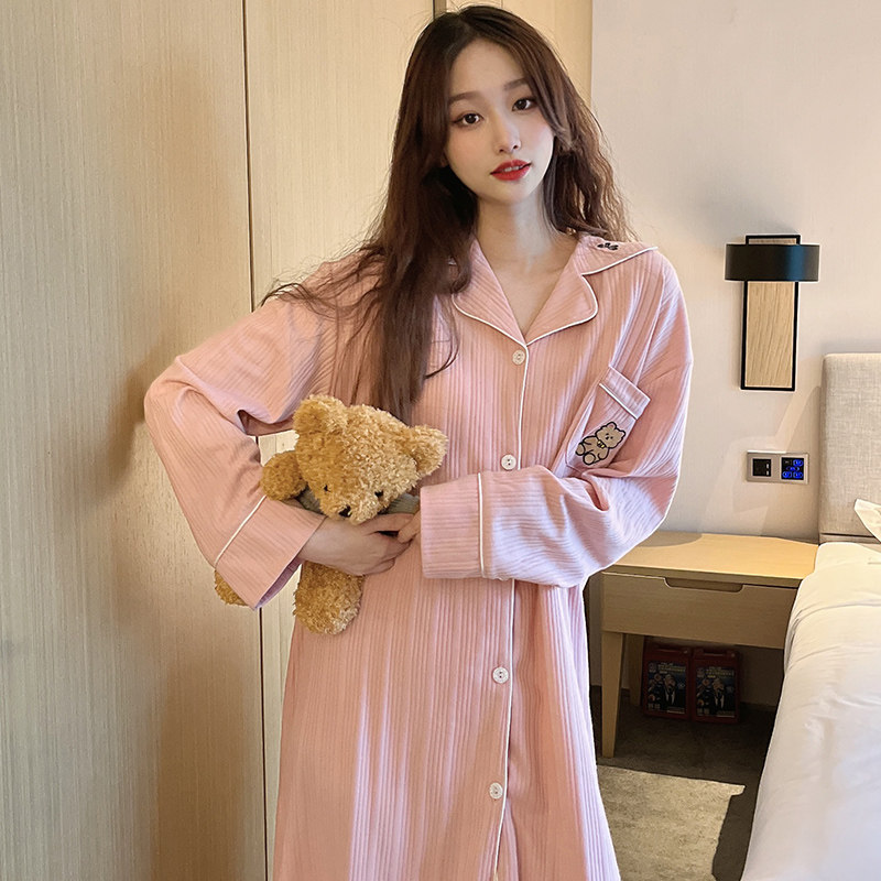Pure Cotton Sleeping Dress Woman Spring Autumn Long Sleeve Cardio-jersey Pajamas Loose in Fashion Ins Korean version Lazy Wind Shirt Skirt-Taobao