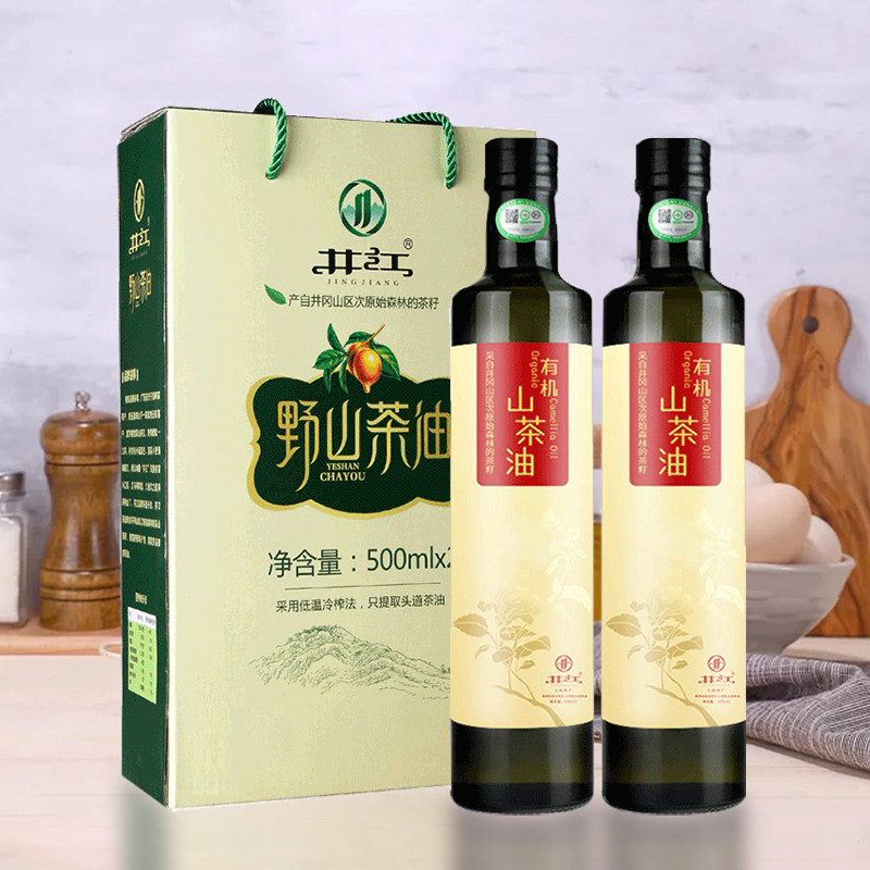 Jingjiang organic camellia oil 500ml*2 gift box tea oil edible oil pure tea seed oil Jiangxi wild tea tree oil