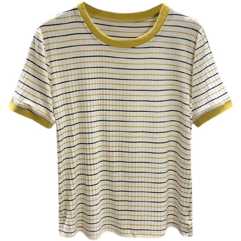 Striped T-shirt female summer short sleeve thin section 2022 new net red loose round collar 100 hitch T-shirt undershirt blouse
