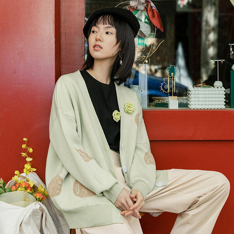 Sow 2022 spring new temperament gentle wool blend button Cardiomegranate Pomegranate Jacquard Cardion DDP1UD4238