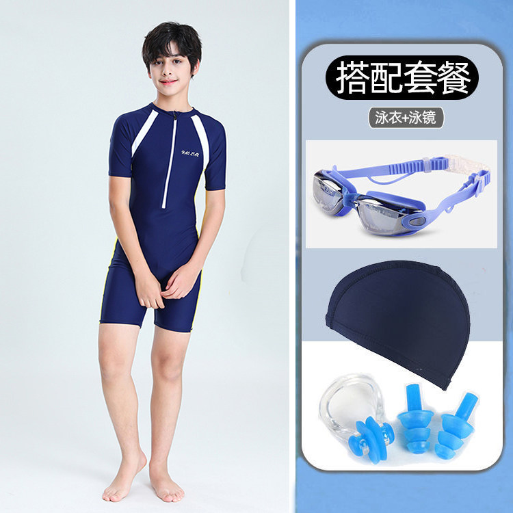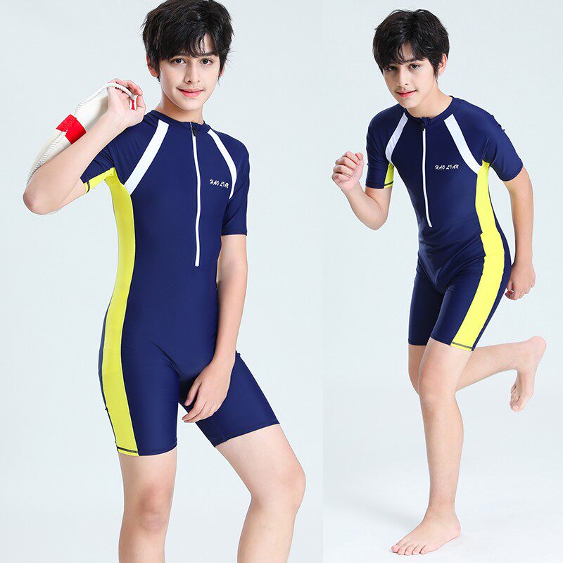2022 new child boys CUHK child teenagers connected to flat corner professional training speed dry fat boy swimsuit suit