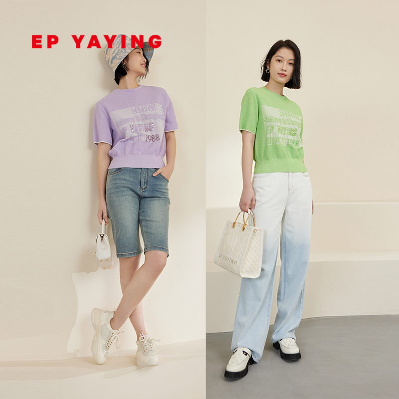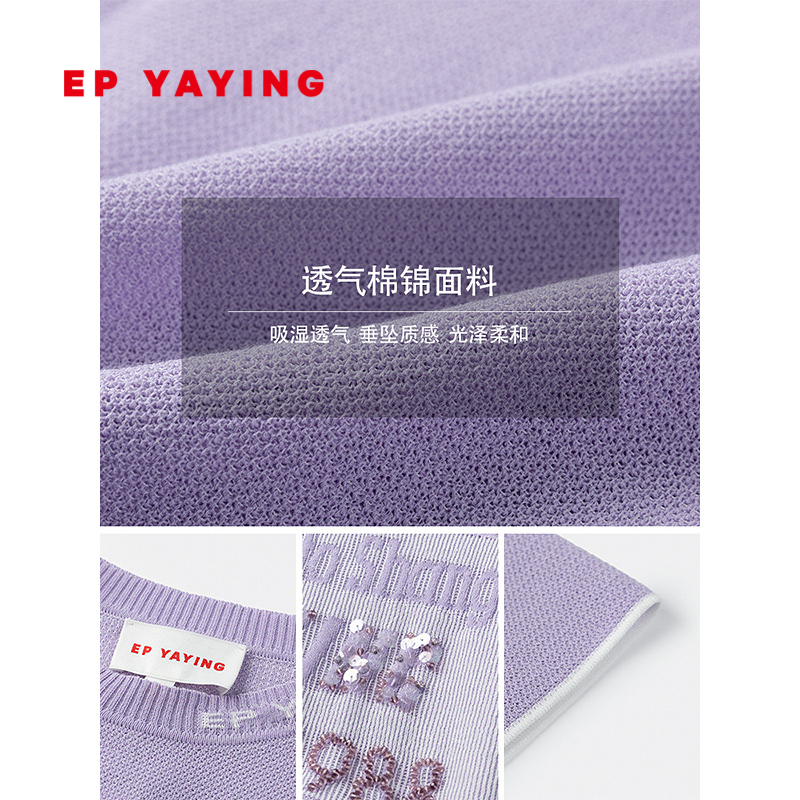 EP YAYING Yying for women's clothing collection waist jacquard breathable cotton thin knit cardiovert 2022 Summer new 9526A