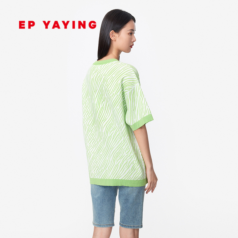 Machine washable] EP YAYING Yaying women's dress hit color striped knit cardiolor 2022 summer fit new 9525A