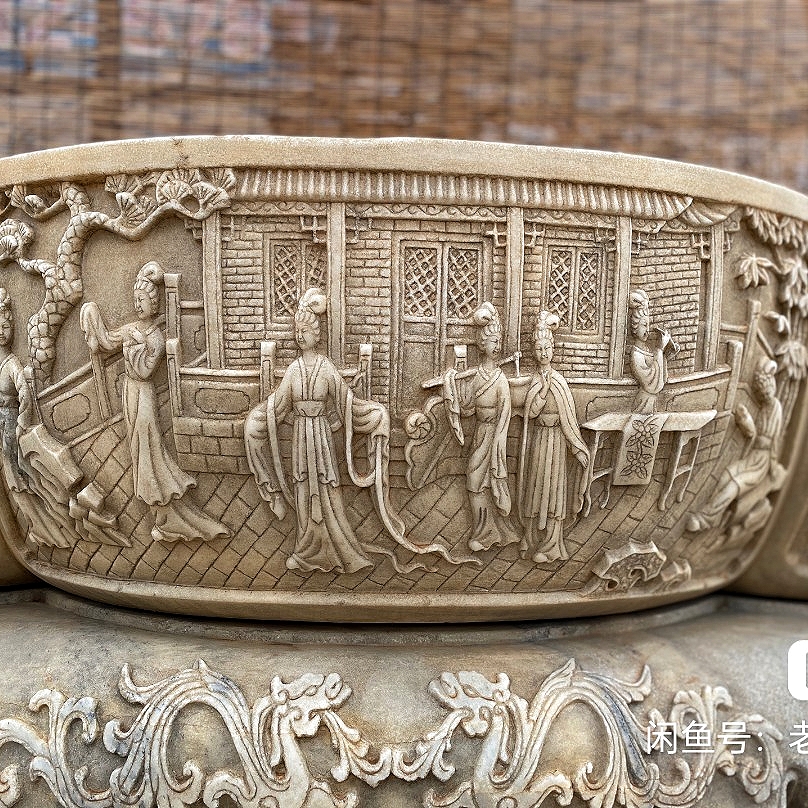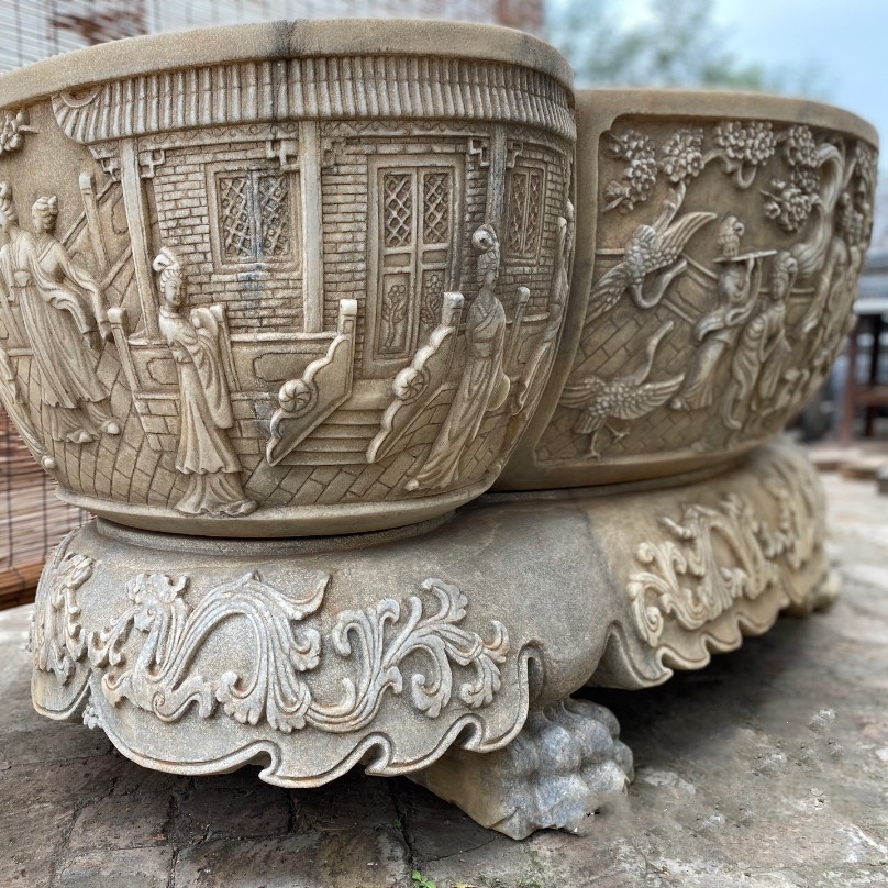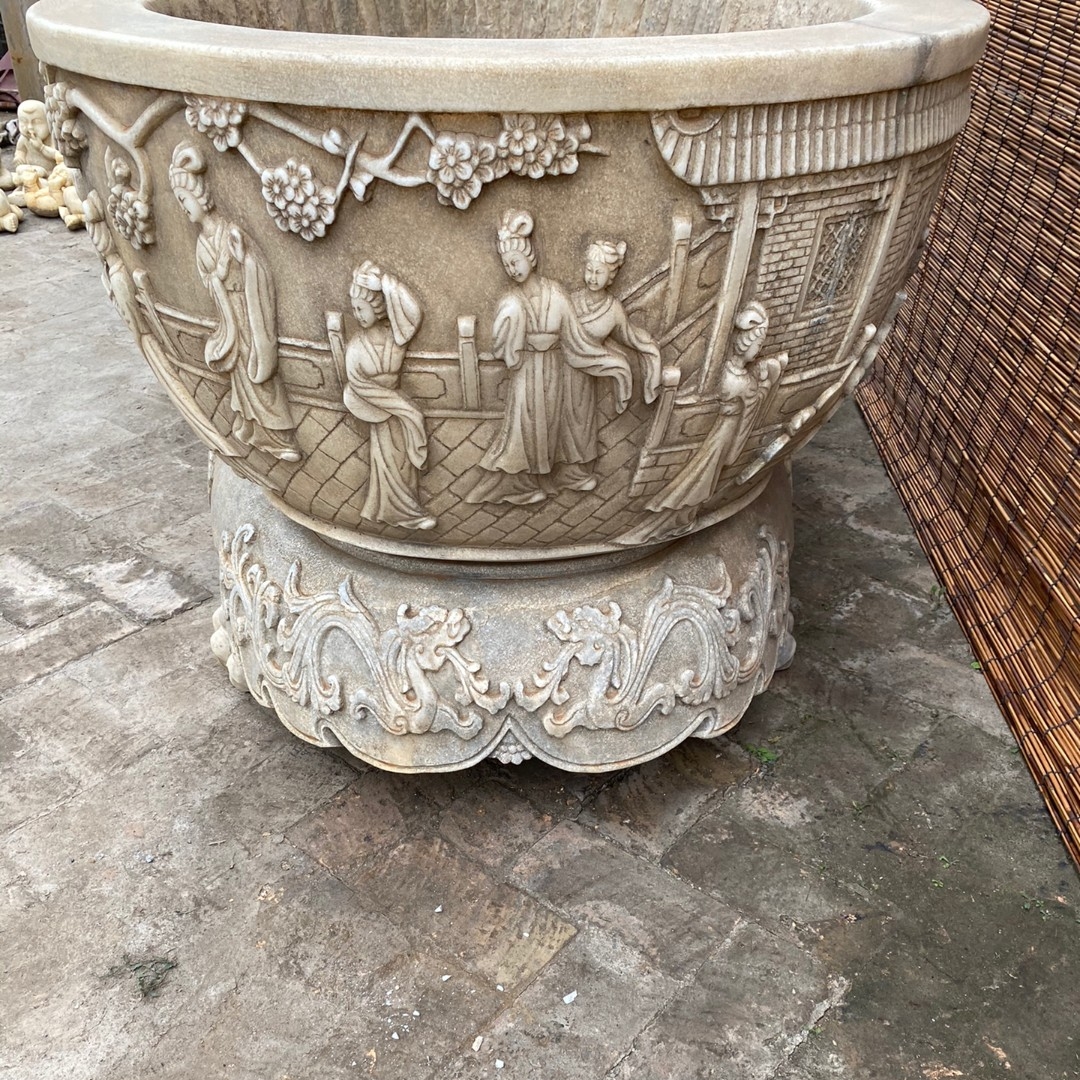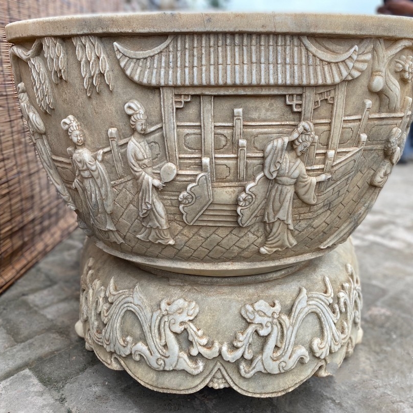 Stone carving flower pot fish tank rectangular flower pot sweat white jade stone fish tank large stone tank imitation ancient figure stone flower pot