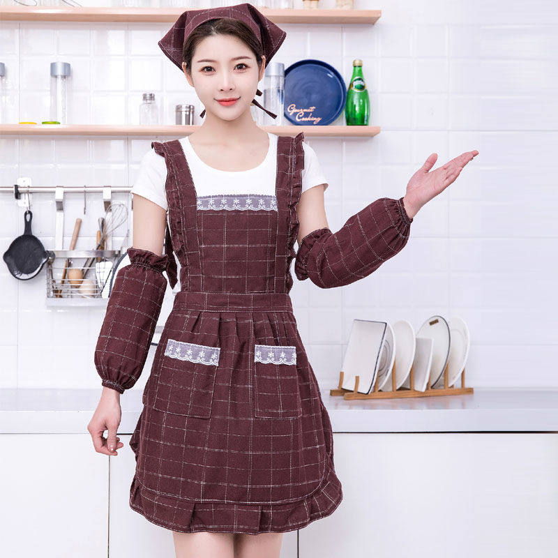 Date red (single-piece apron) date red with the same cover sleeve date red identical sleeve headscarf coffee color (single piece apron) coffee color covets sleeve coffee color the same cover sleeve headscarf dark grey (