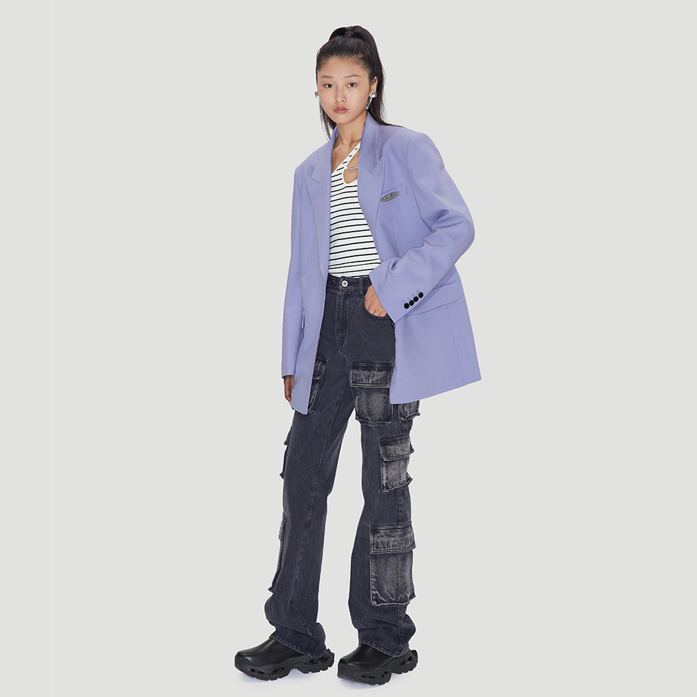 UOOYAA Ugirl 2022 Spring new classic lavender purple metal chest-marked suit jacket