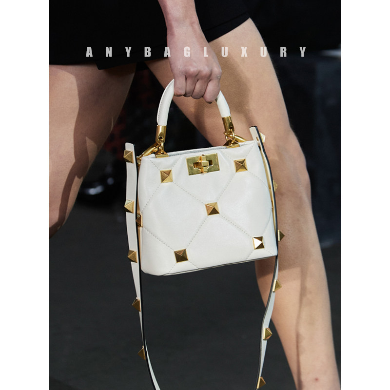 Calf Leather MagigelROMAN Rivet Bucket Carry-on Satchel Bag In Hand