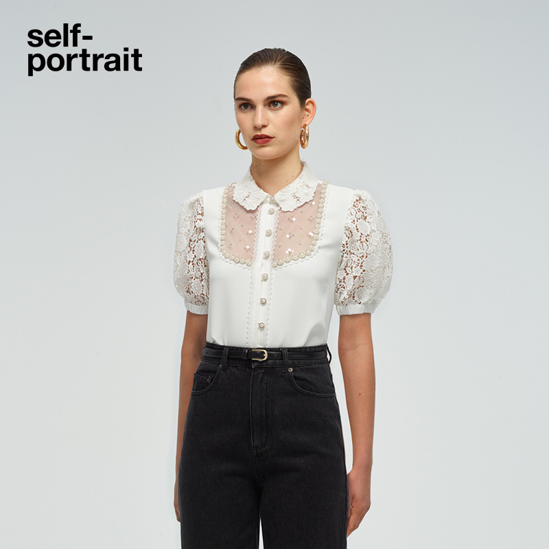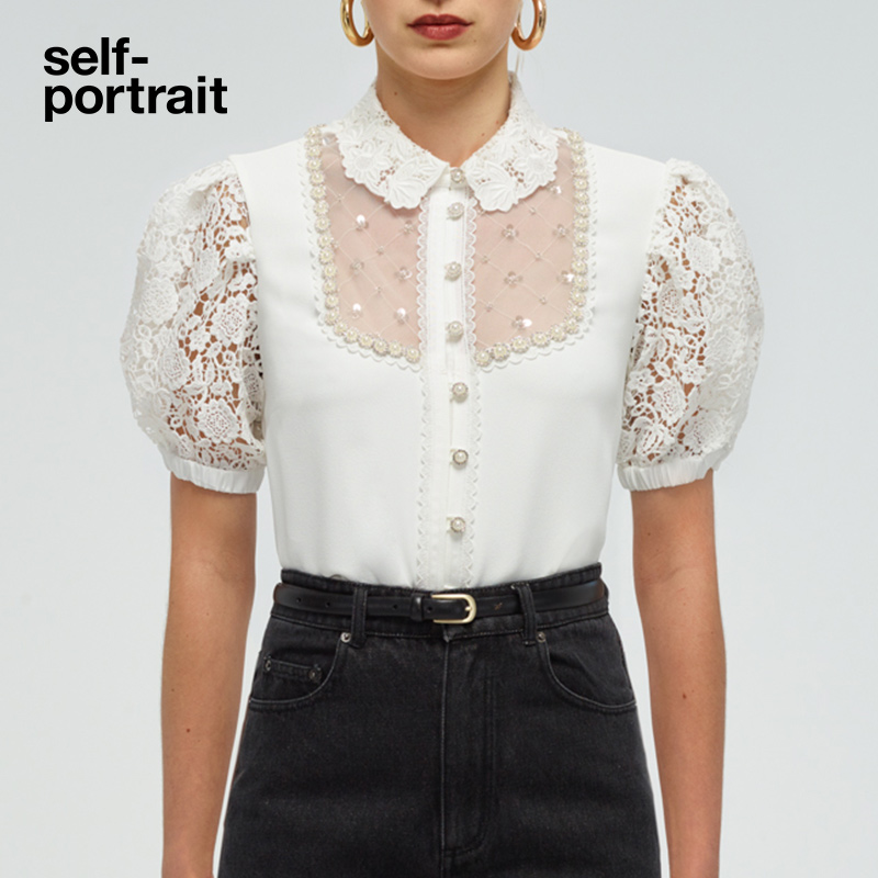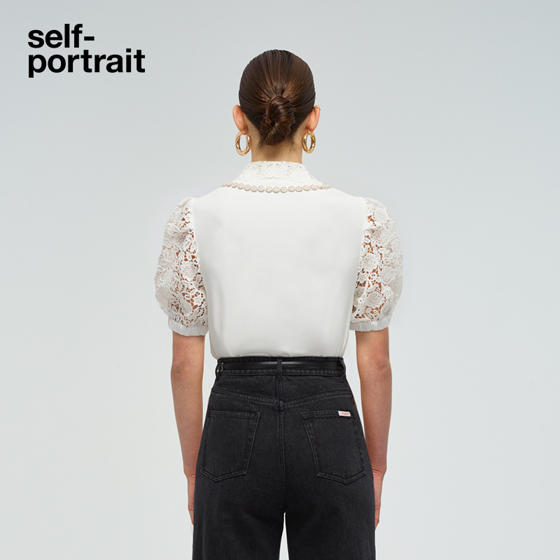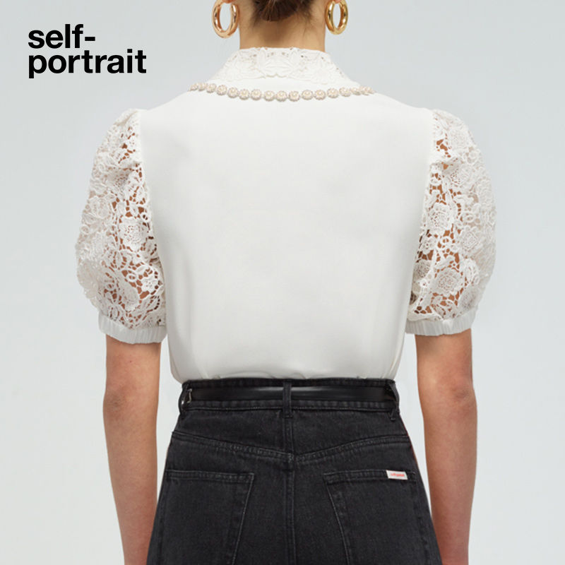 self-portrait 2022 spring and summer pure white lace puff sleeve French sweet top