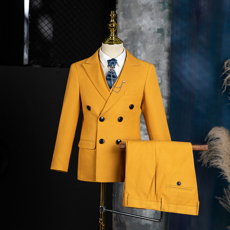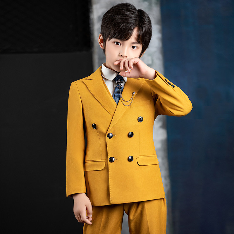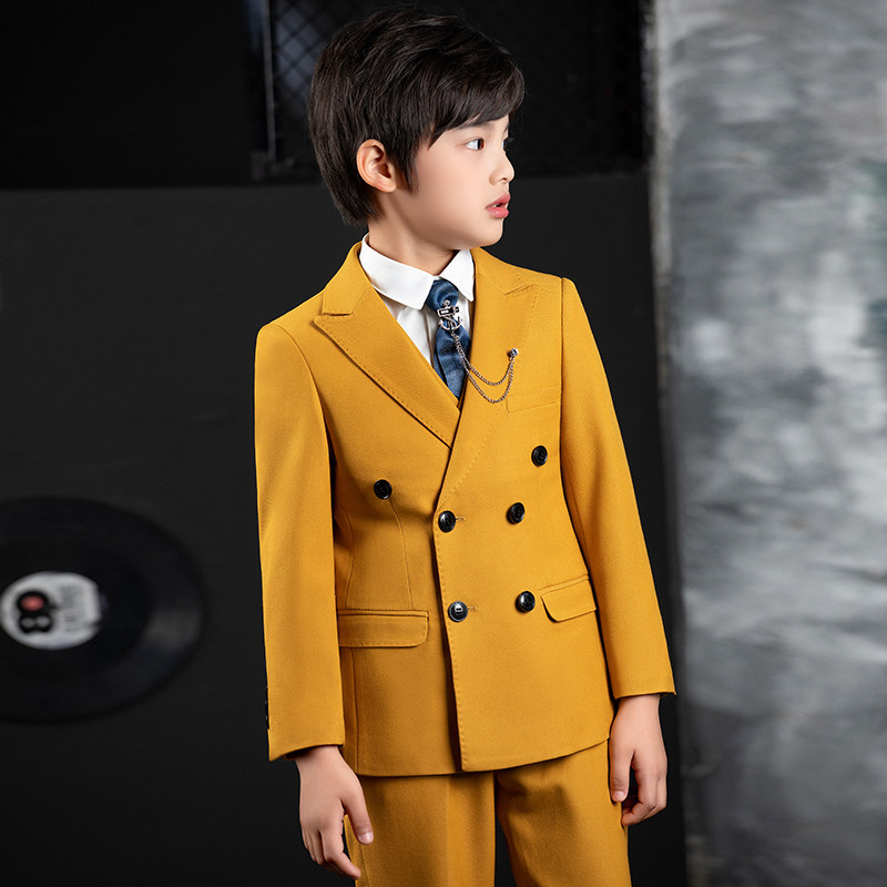 Children's suits suit boy Spring and autumn handsome qi Yinglun flower gown West suit CUHK Tong Piano Plays Out Yellow