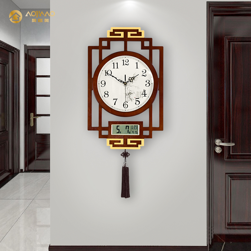 Perpetual calendar hanging bell new Chinese living room free of punch hanging wall clock home mute watch atmosphere minimalist quartz clock