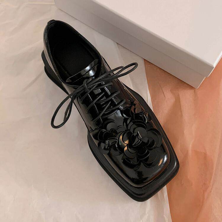 2022 new spring square toe lace-up flower thick-soled British style leather shoes jk loafers thick heel small fragrant style genuine leather