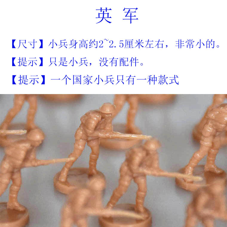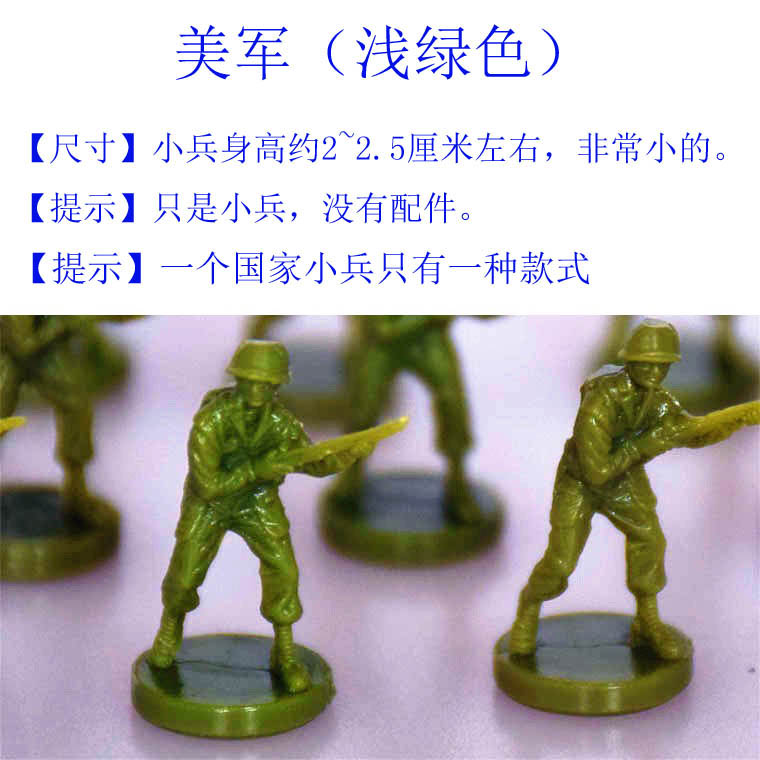 British Army Packaged US Army Packaged German Army Packaged Japanese Army Packaged British Little Bing 100 (just little soldier no accessories) US military dark small soldier 100 (just little soldier no accessories) US military Light Petty Soldier