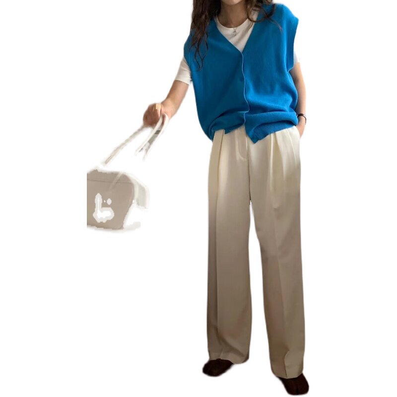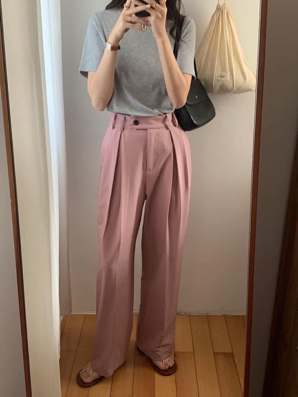 SPRING MONEY 2022 Advanced pink broadlegged Western pants Female Korean version loose Lean Casual Tug Western Pants