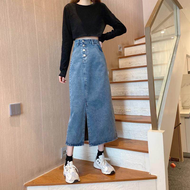 Large size side open fork Cowboy half body dress with long version of spring Fat mm Chains Careful Machine Bag Arm Skirt slim long dress