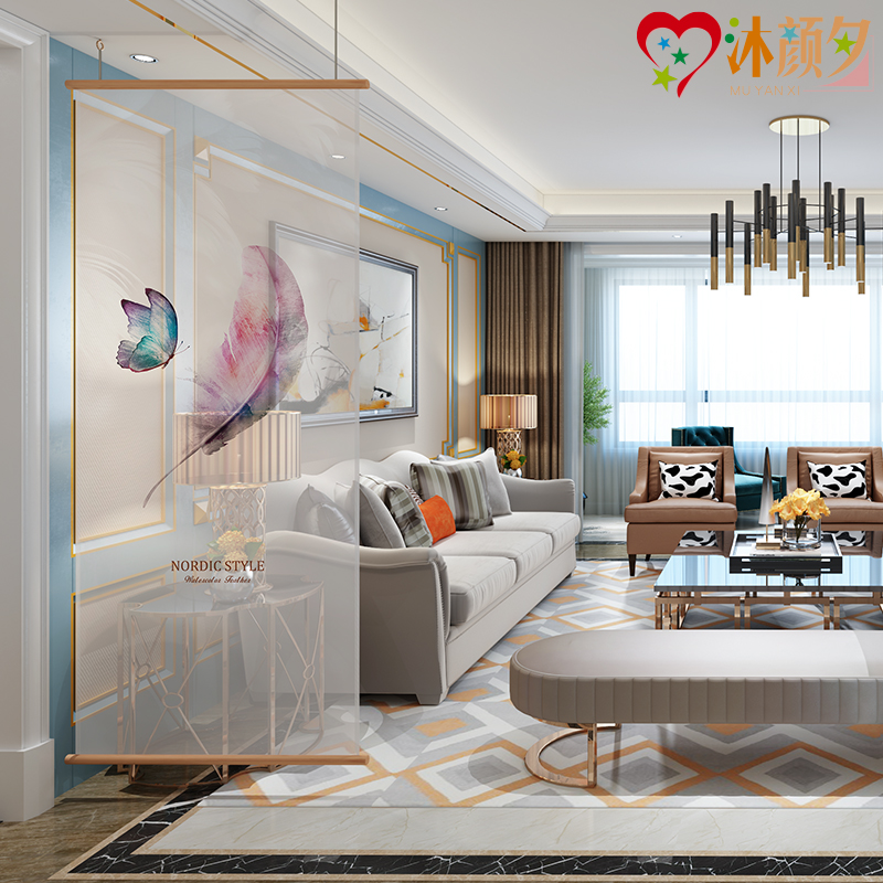 Modern minimalist home soft screen living room light luxury partition window Nordic translucent porch hanging curtain hanging screen hanging