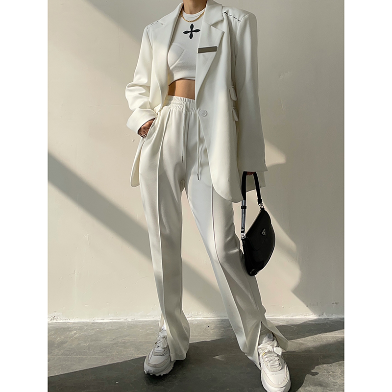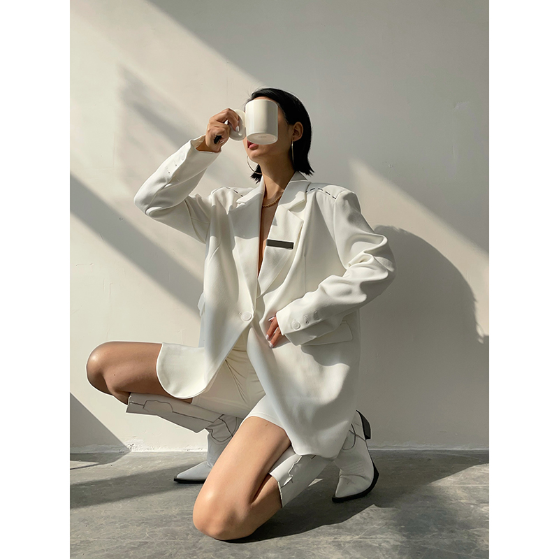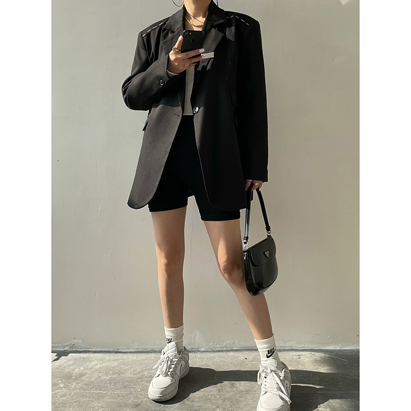 ACUP Loose Suit Jacket Woman 2022 Spring and American Metal Decorative Advanced Sense line padded shoulder Fried Street West Suit