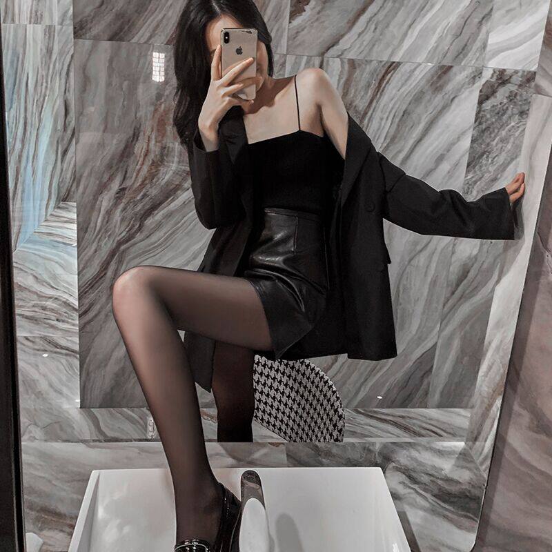 Black mercerised leg Divine Instrumental Woman Autumn Winter in Pants Sexy Silk Socks Spring Autumn Thin and Fake Through Flesh-Skin Pants Socks