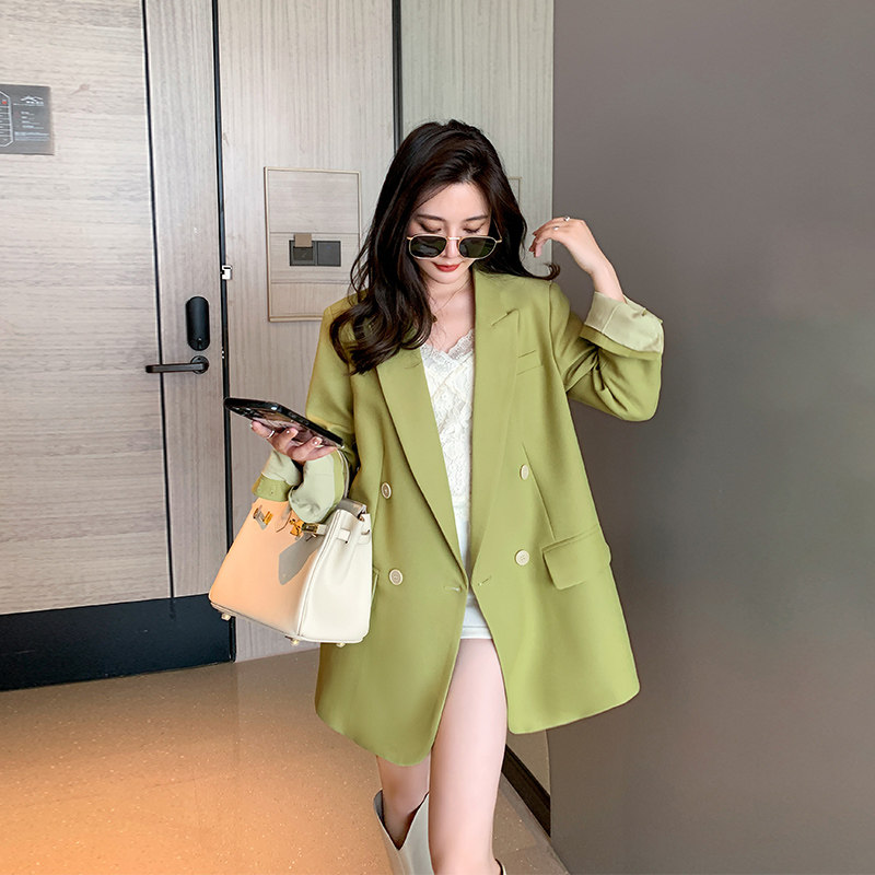 2022 Spring Autumn New Bull Oil Fruits Green Suit Jacket Woman Superior Feel Fried Street Korean Version Loose Casual West Suit Blouse