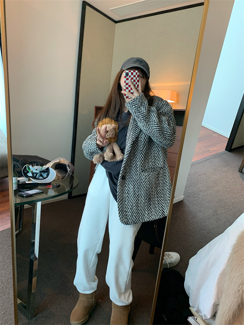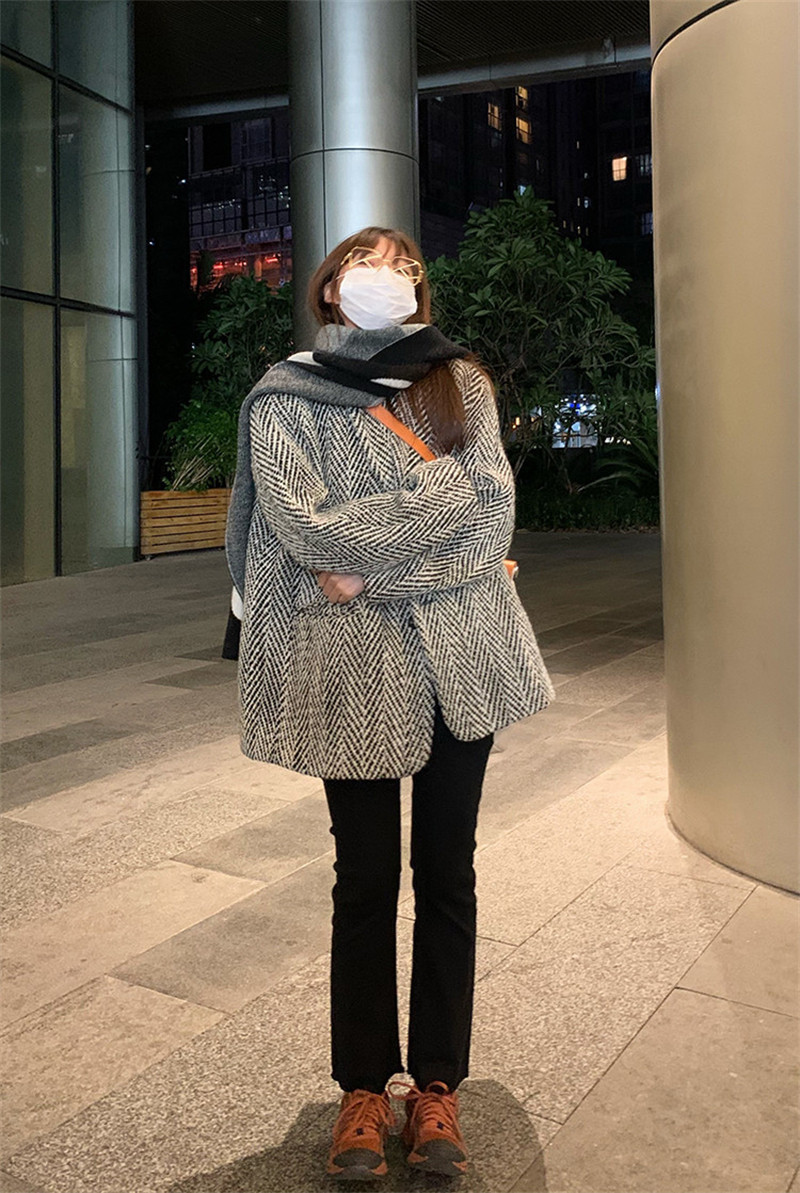 2022 autumn foreign style durable G quality wool woven silhouette suit herringbone slub