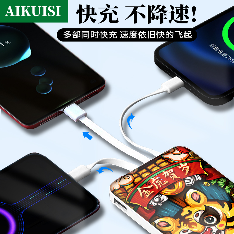 Mobile charging Bring your own line Three-in-one 20000 milliaman Super fast full capacity applies Apple Huawei Vivo Xiaomi OPPO Mobile phone special ultra-thin and convenient country tide action power supply