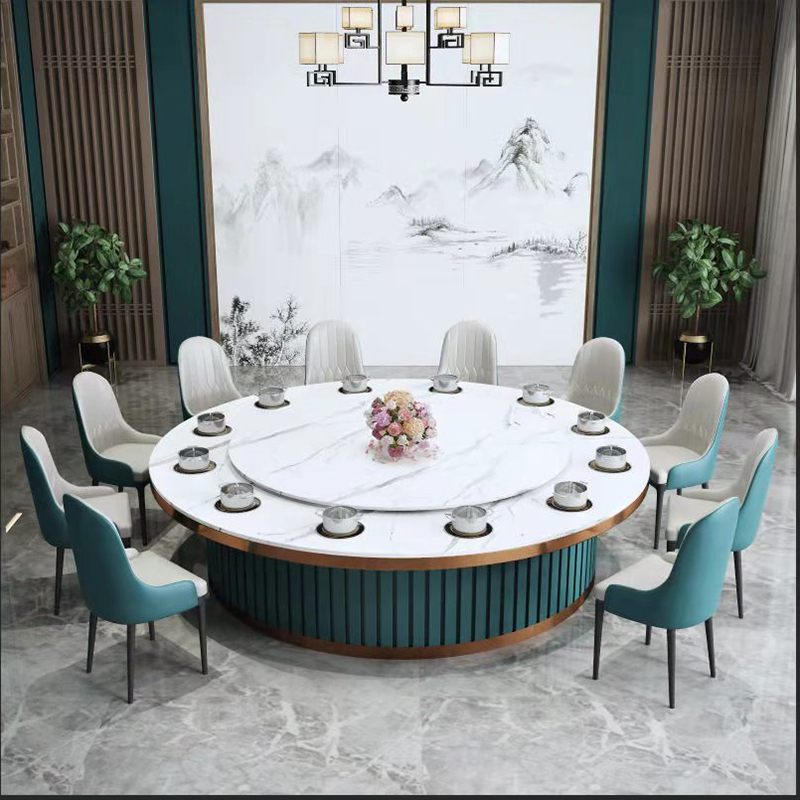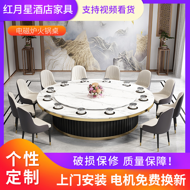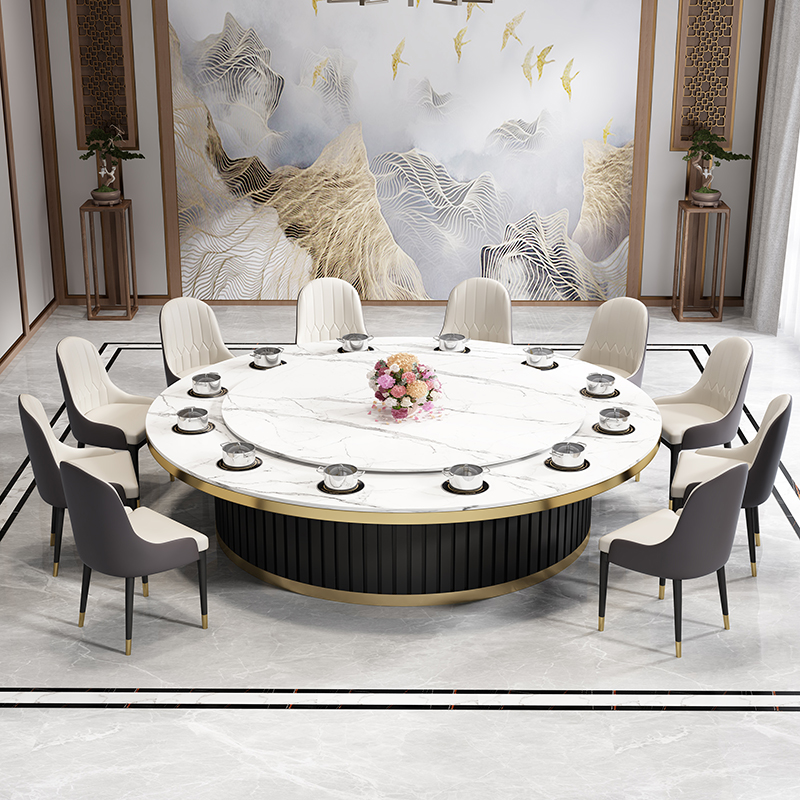 Hotel Hotpot Table induction cooktop Electric Imitation Marble Table New Chinese Automatic Swivel Big Round Table