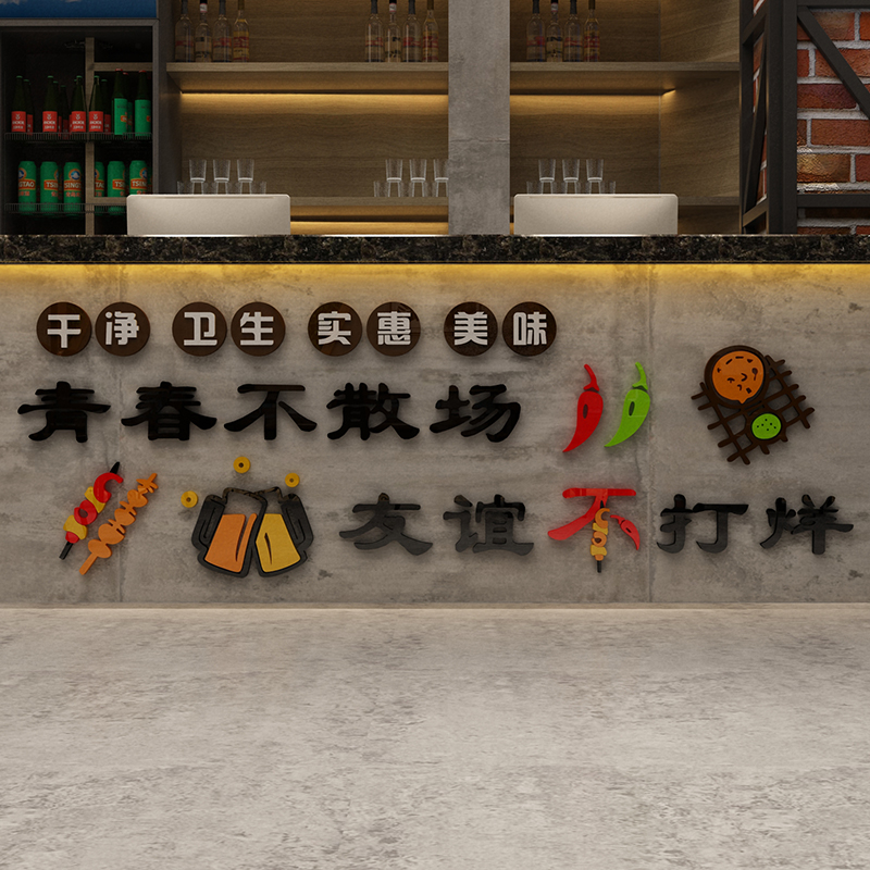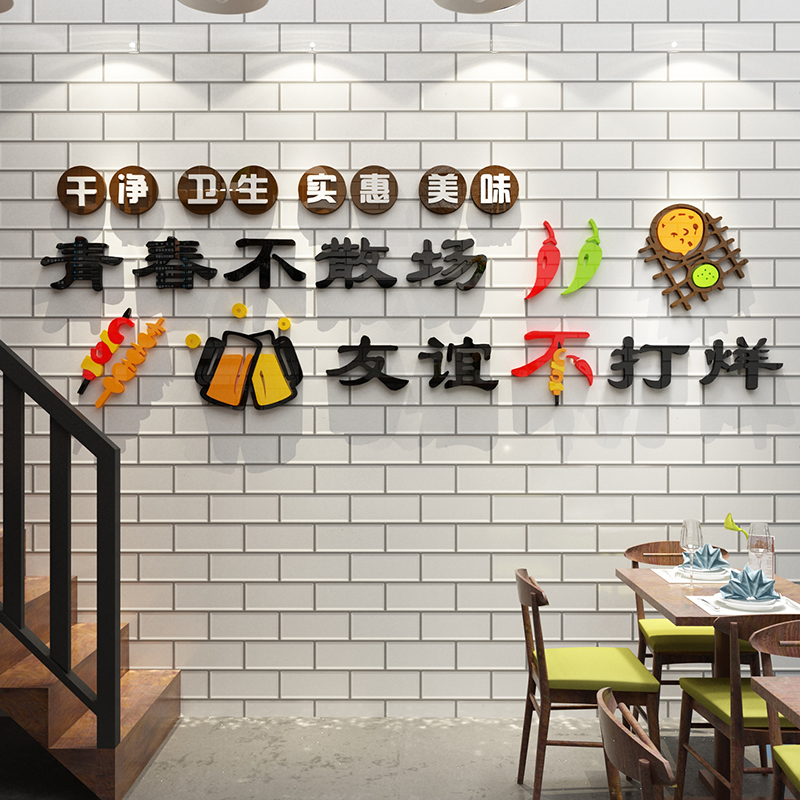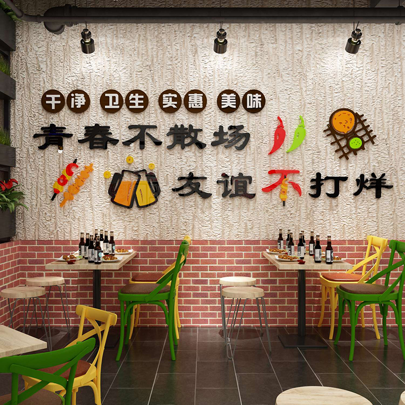 Net Red Punch Card 3d Stereobarbecue Shop Decoration Creative Background Wall Face Sticker Painting Catering Hotel Arrangement Pendant