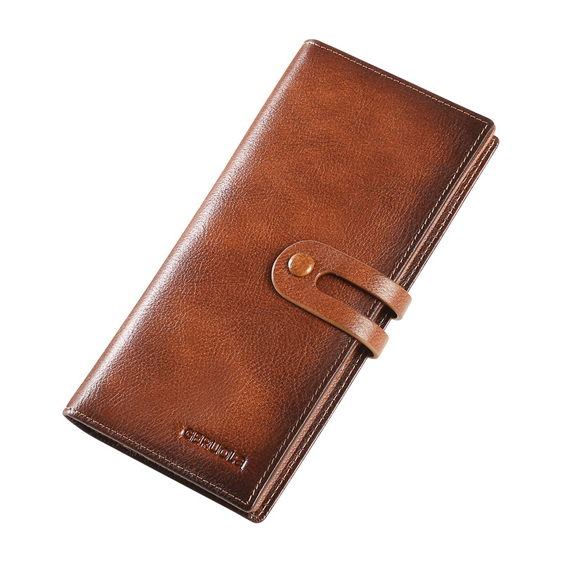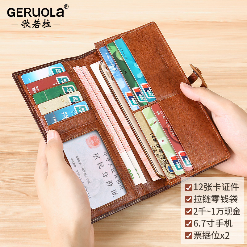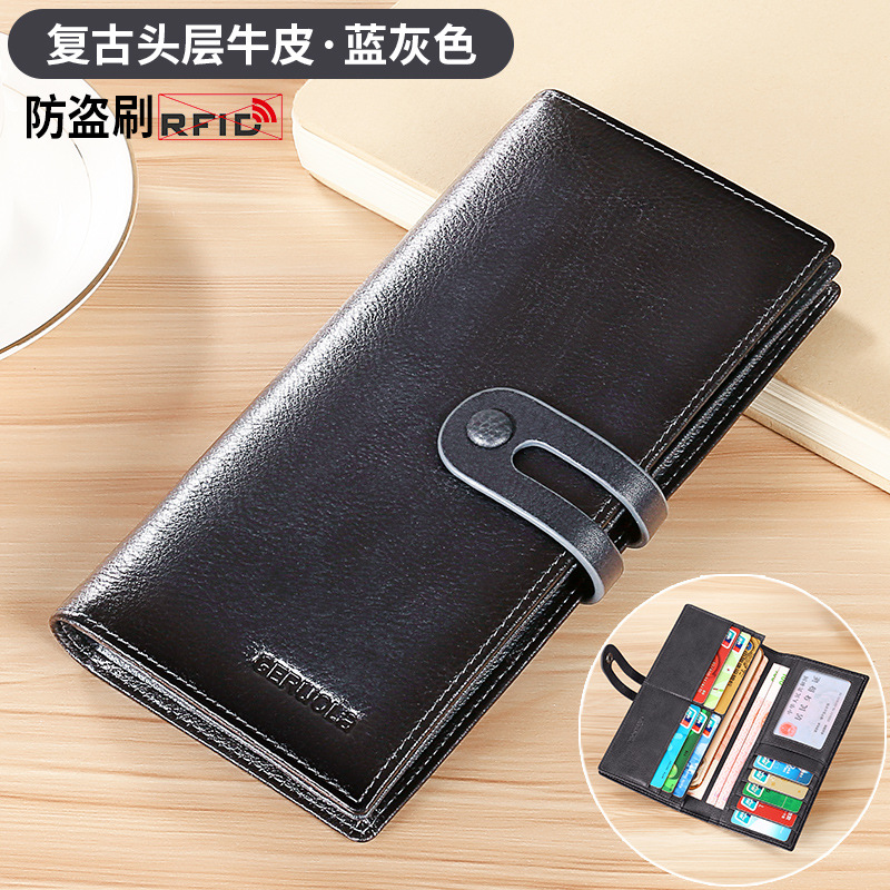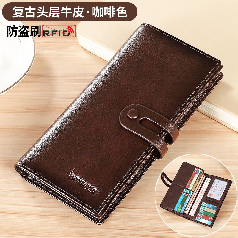 Men's Wallet Flagship Store Official Headlayer Bull Skin Multi screens Retro long version genuine leather clip Anti-theft brush Money clip