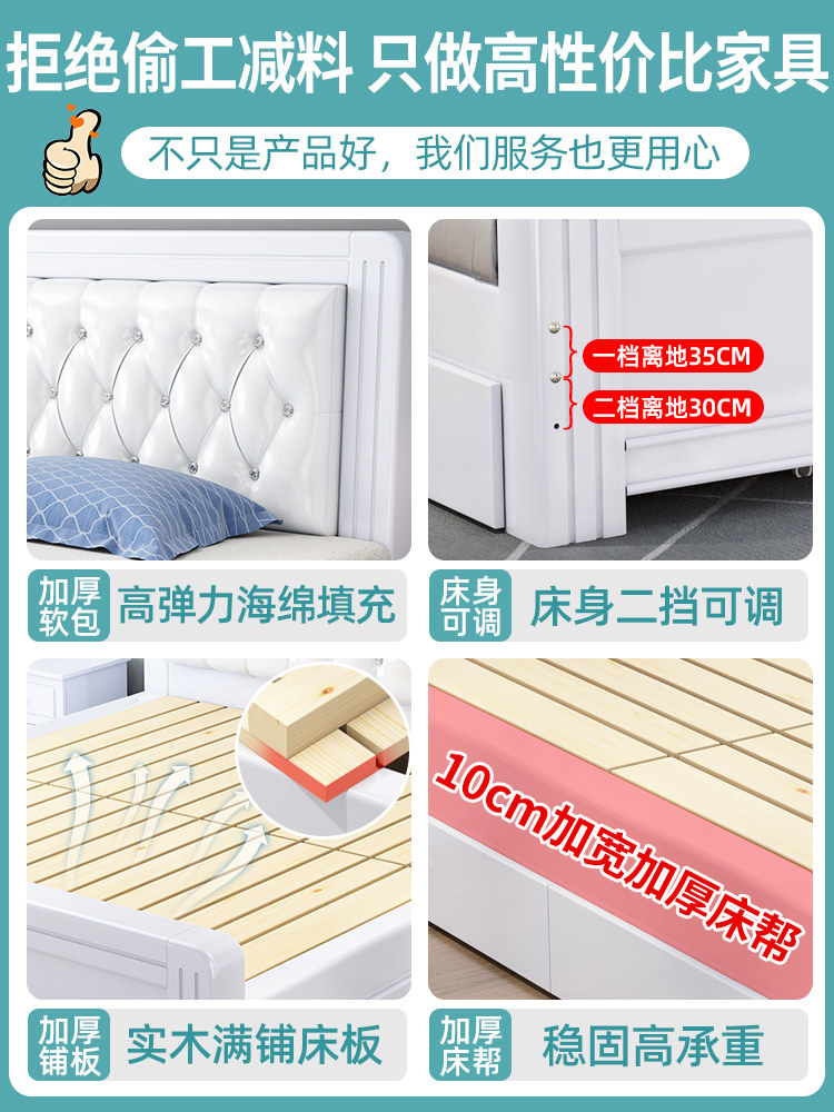 Solid wood bed modern minimalist 1 8 meters European master bedroom 1 5 household double bed economical soft package 1 2m single bed