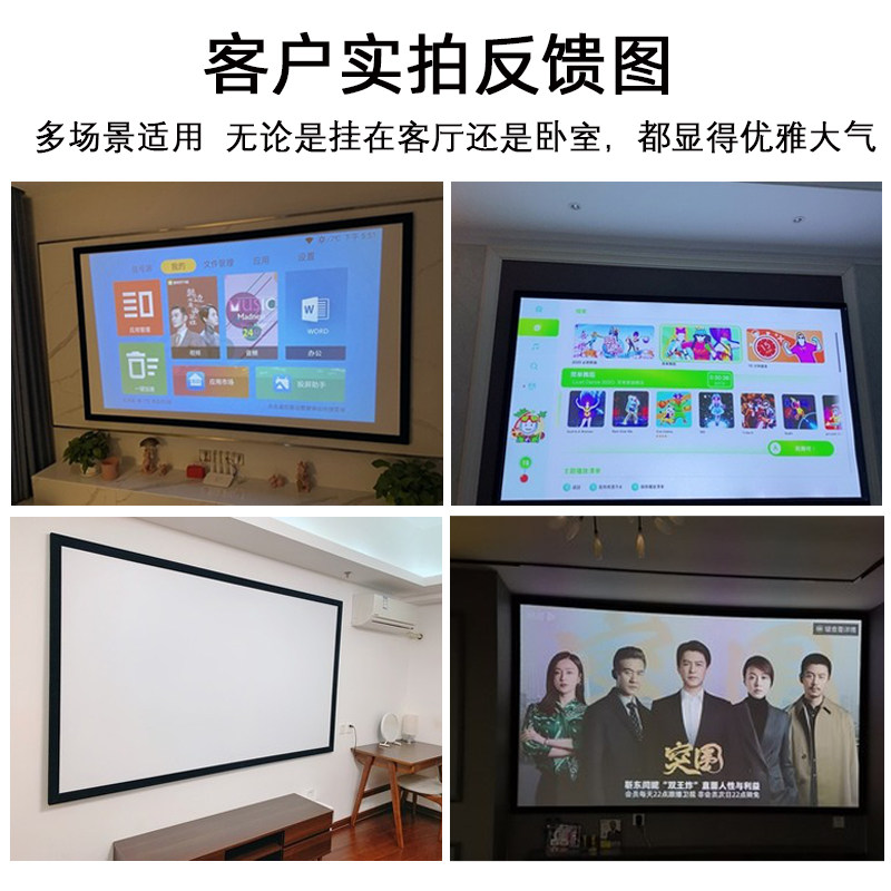 4k Black Drill Frame Curtain Projector Curtain home wall-mounted high-definition 100 inch black crystal metal anti-light outdoor curtain