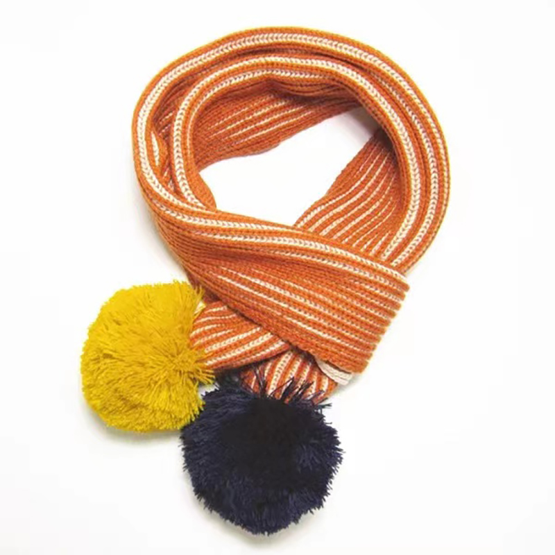 pocoblush winter collocation boys and girls ball ball western style striped contrast color children's cute warm knitted scarf
