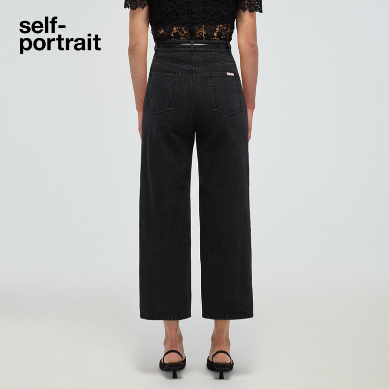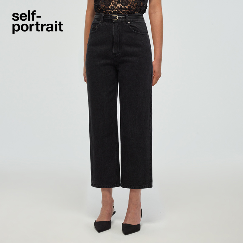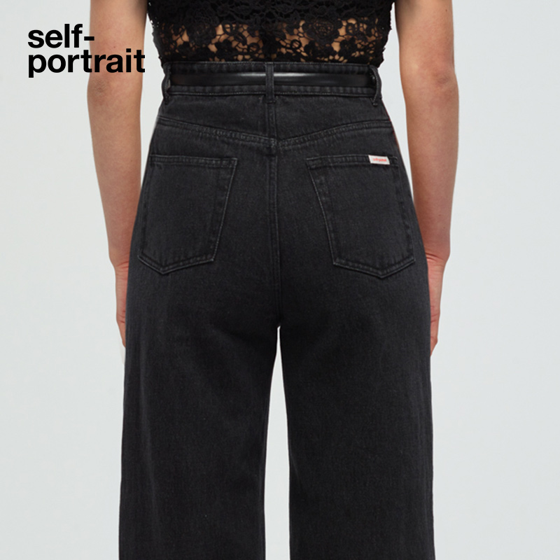 self-portrait 2022 early spring classic black high waist straight denim trousers