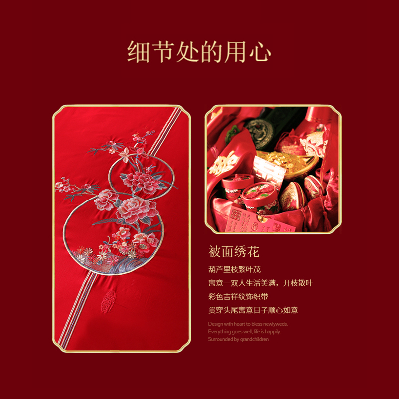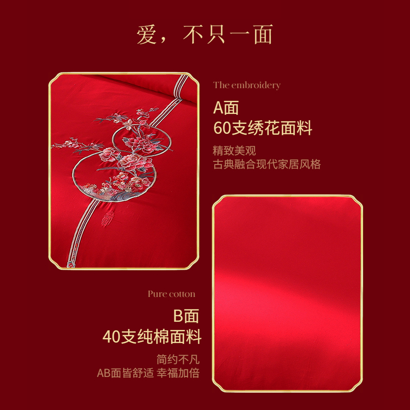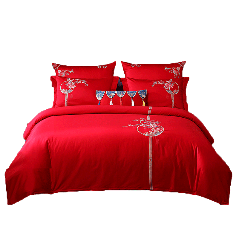 Mengjie Home Spinning Wedding Celebration Cotton Four Cotton Embroidery Suite All cotton Big Rough Married Wedding Celebration