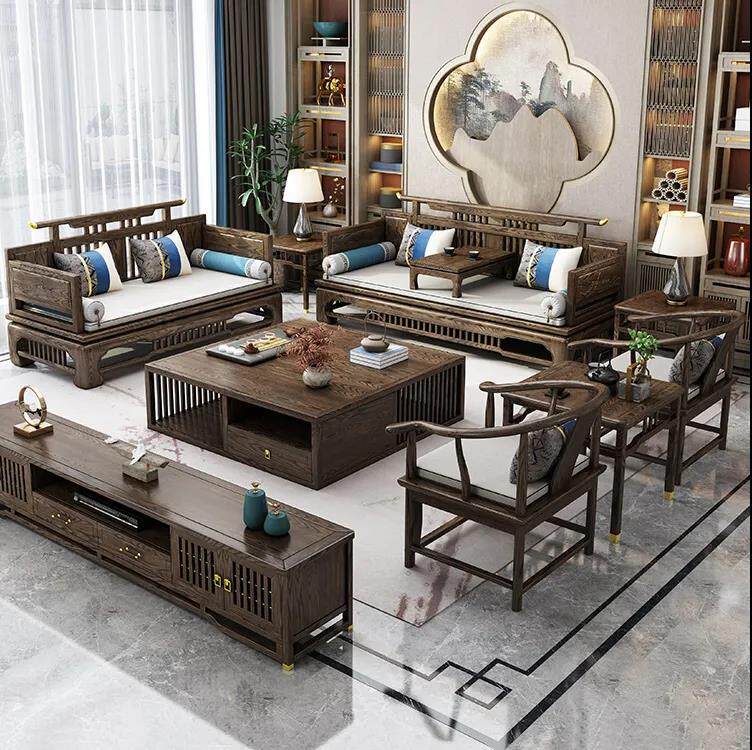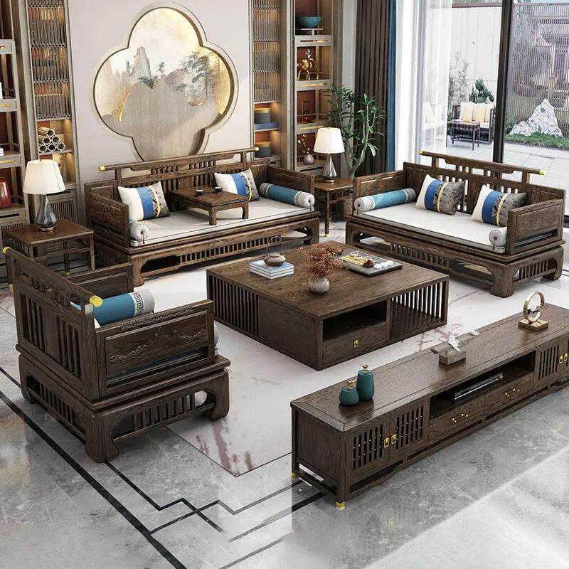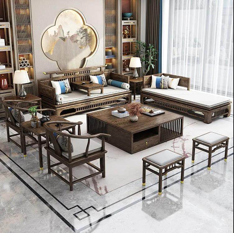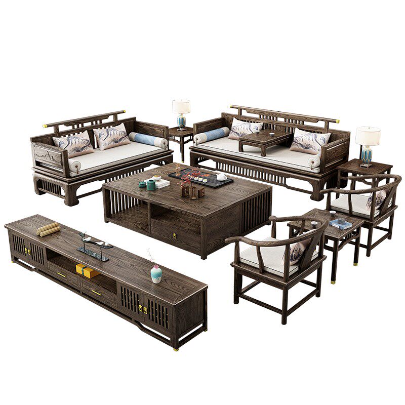 New Chinese style ash wood solid wood sofa Luohan bed combination large-scale winter and summer dual-use high-end villa living room furniture