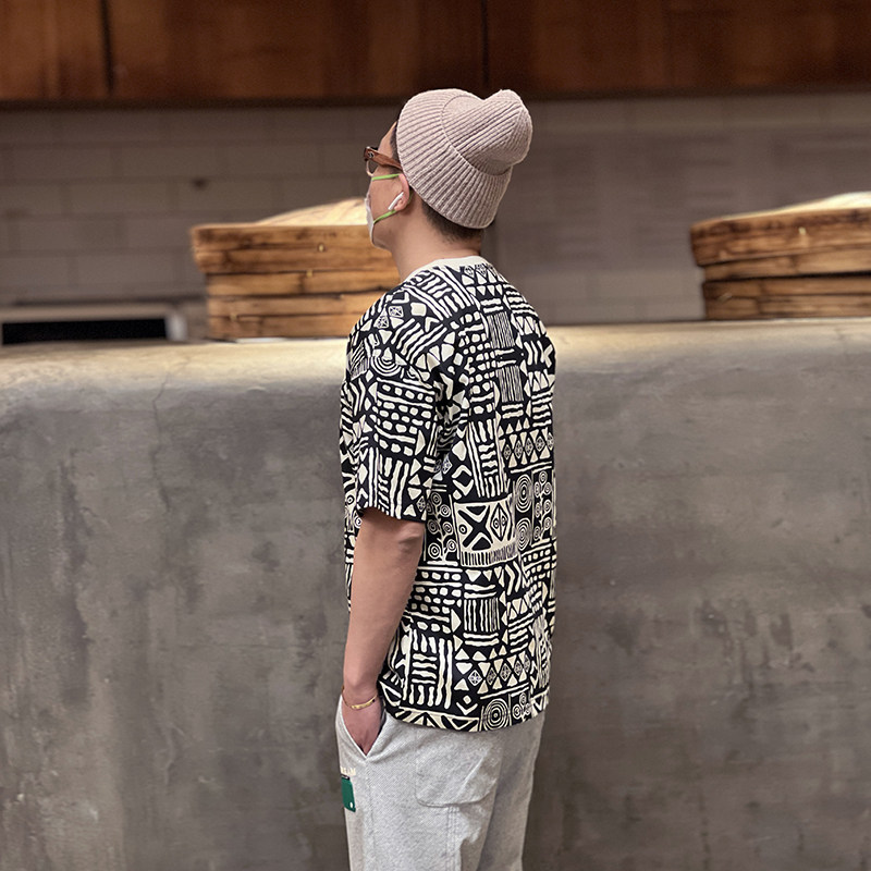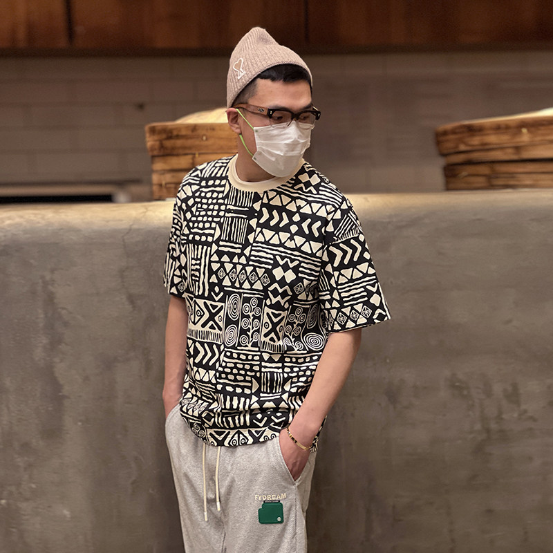 Spring men's personality full flower short-sleeved T-shirt round neck loose T-shirt American printing casual trend bottoming shirt