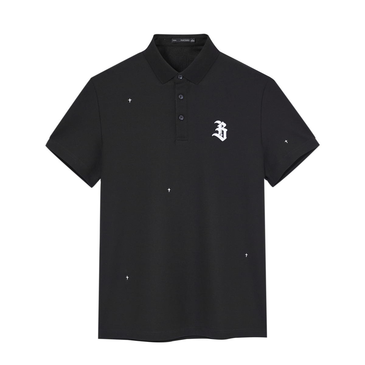 (Mall same section) Taiping bird men's clothing 2022 summer dark black wind white embroidery POLO B2DBC2273