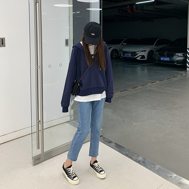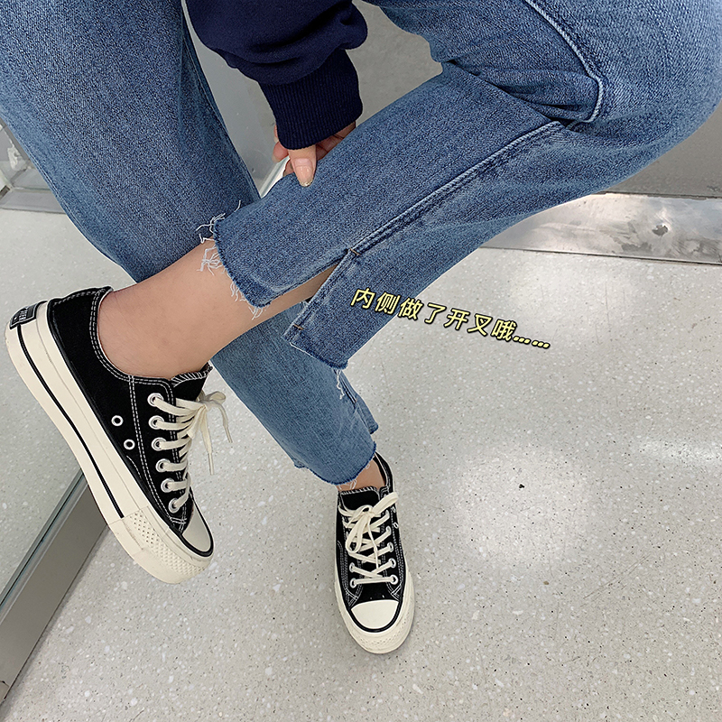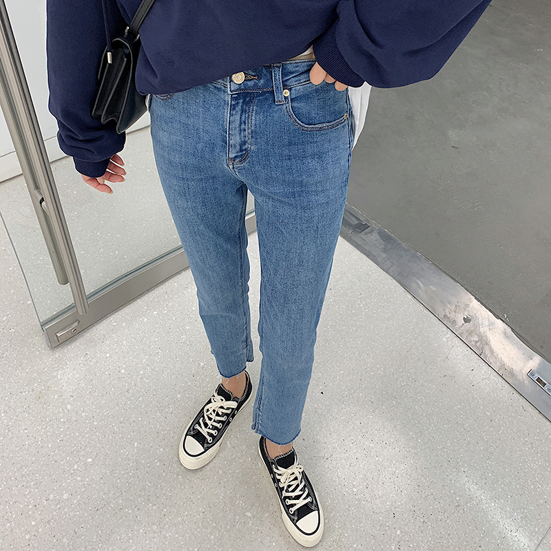 Special price clearance not to be changed without changing open fork jeans Women's new high waist straight cylinder pants 100 hitch slim hairy side 90% pants