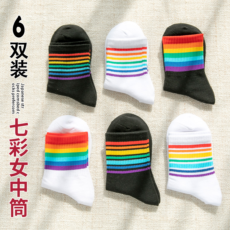 Rainbow Socks Children's Autumn Winter Middle Socks Lady Stockings Sports Socks With Socks the Red Sox Red Socks Stockings Stockings Stockings Socks