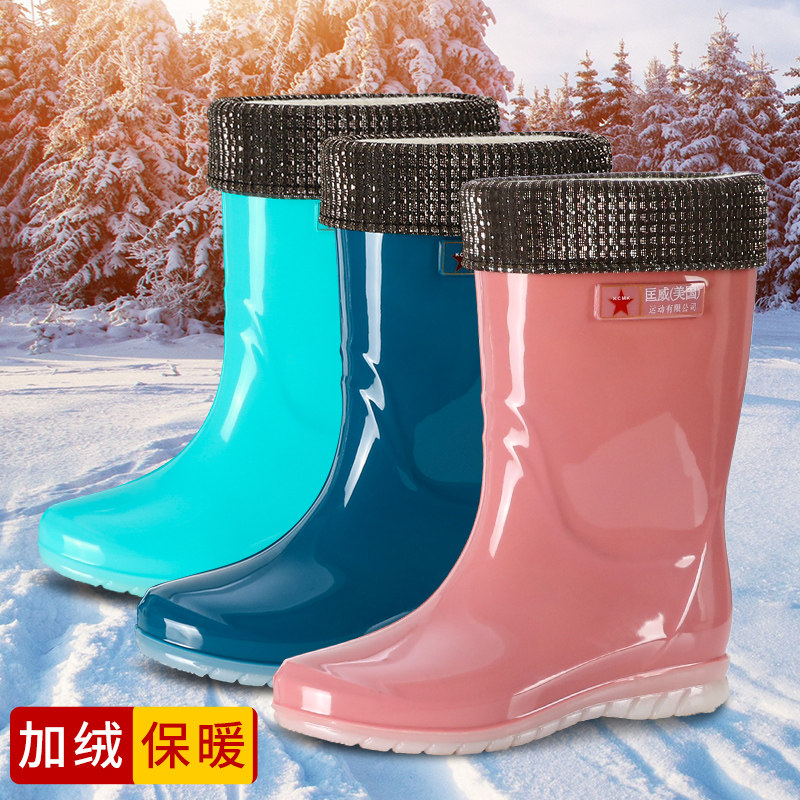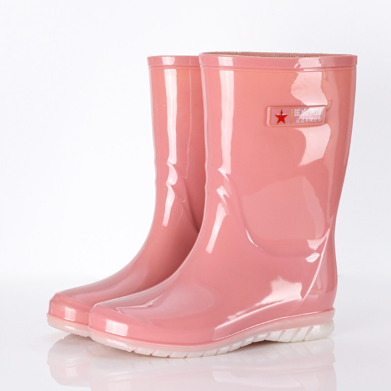 Spring rain boots women's fashion outer wear waterproof and non-slip water shoes kitchen work thick bottom wear-resistant adult mid-tube rubber shoes
