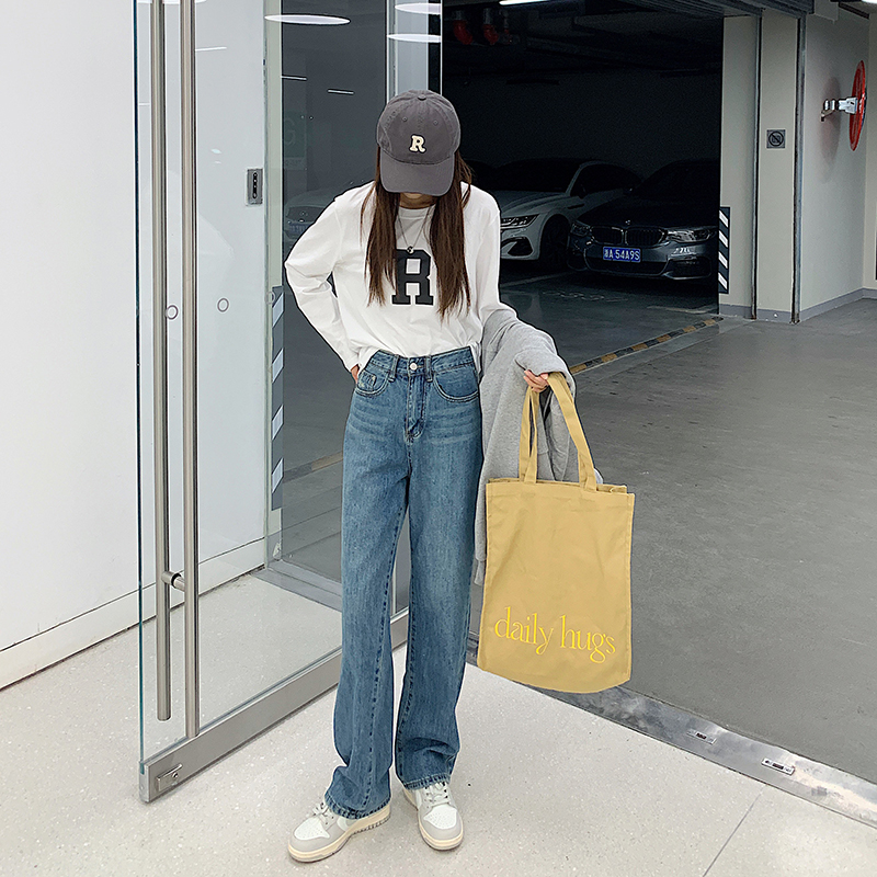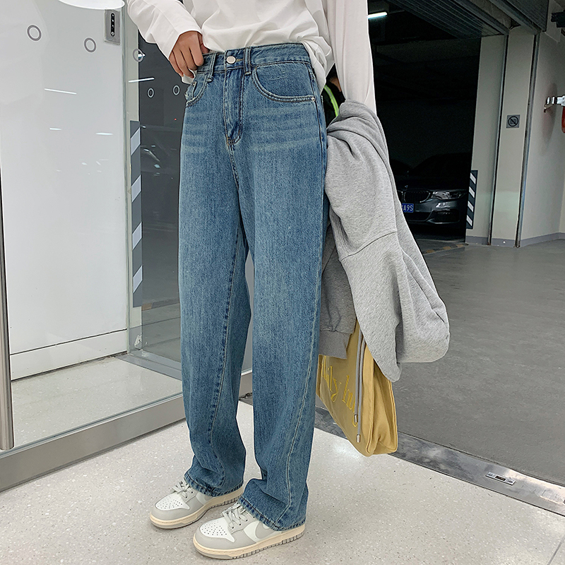 High Waist Display Slim Straight Drum Jeans Woman 2022 Spring Autumn New Loose Tug Pants Retro 100 Broad Leg Pants Summer