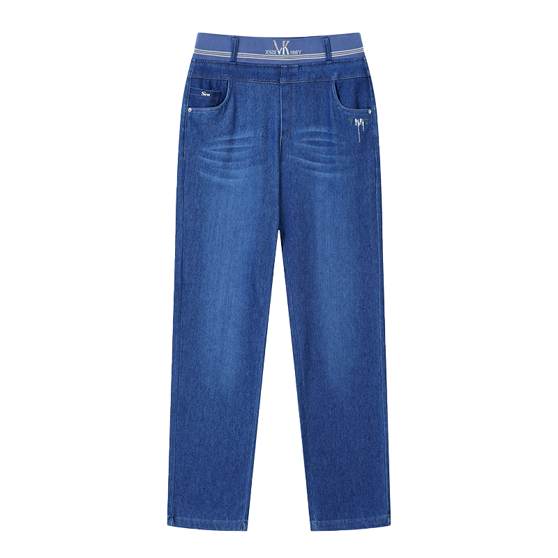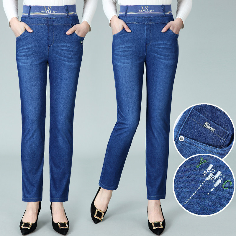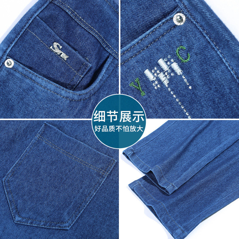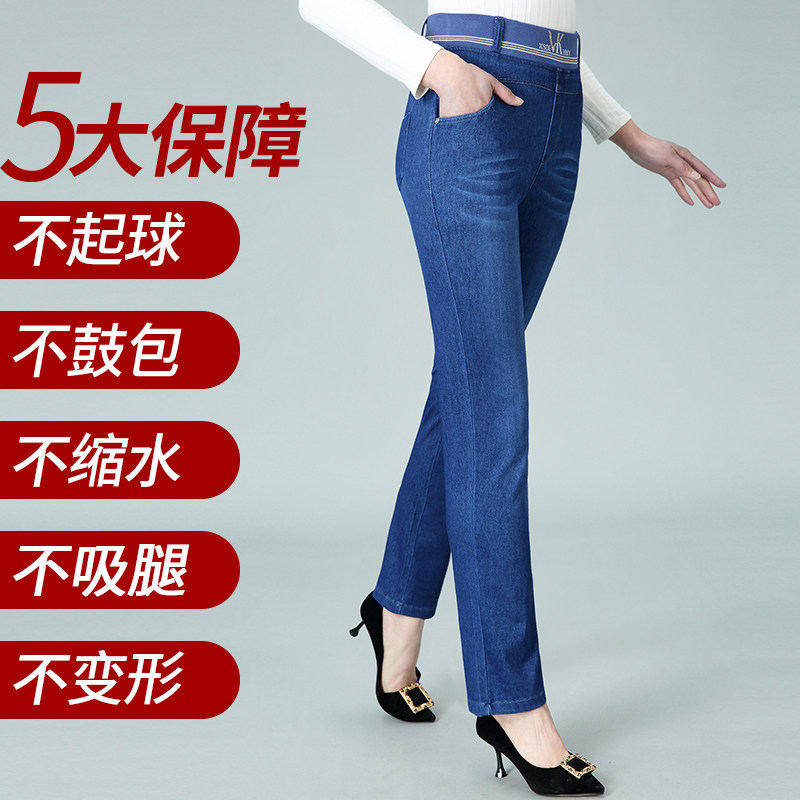 High waist straight jeans women's plus size loose trousers 2022 spring and summer new plus size elastic waist mother pants