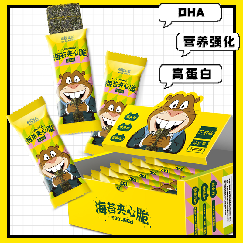 Mr. Beaver Seaweed Sandwich Crisp Sesame Flavor 40g *1 Box High Calcium High Protein Seaweed Crisp Instant Snack