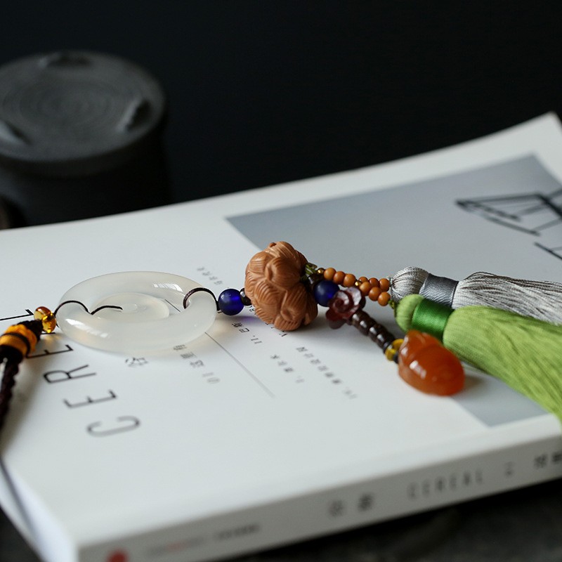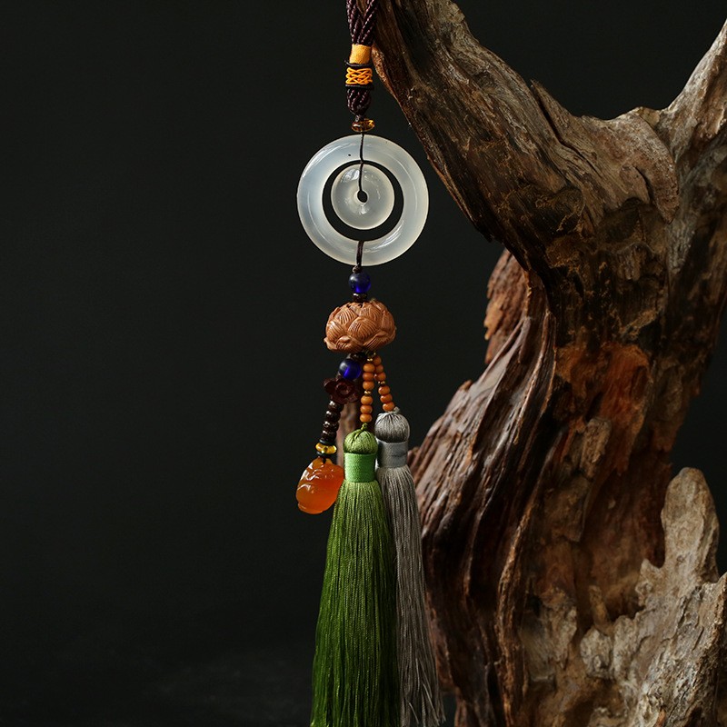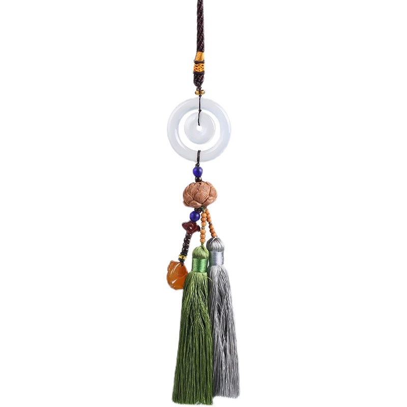 White jade medullary car pendant mother and son Ping An clasp upscale natural male and female hanging decoration Pau Ping An inside jade pendant in the car
