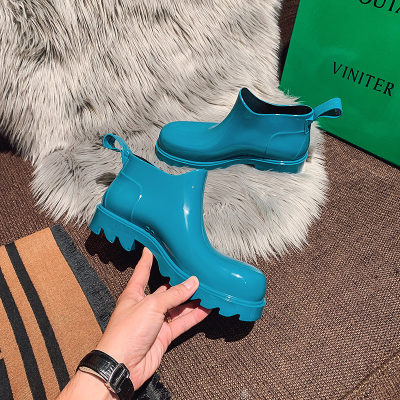 Ashigömona with the same paragraph 2022 new rain boots female male and female couple big size short cylinder thick bottom 2022 V waterproof rain shoes