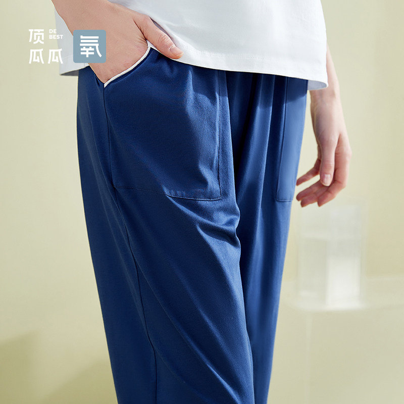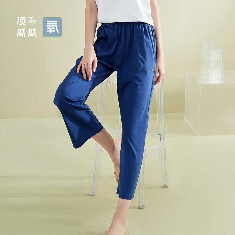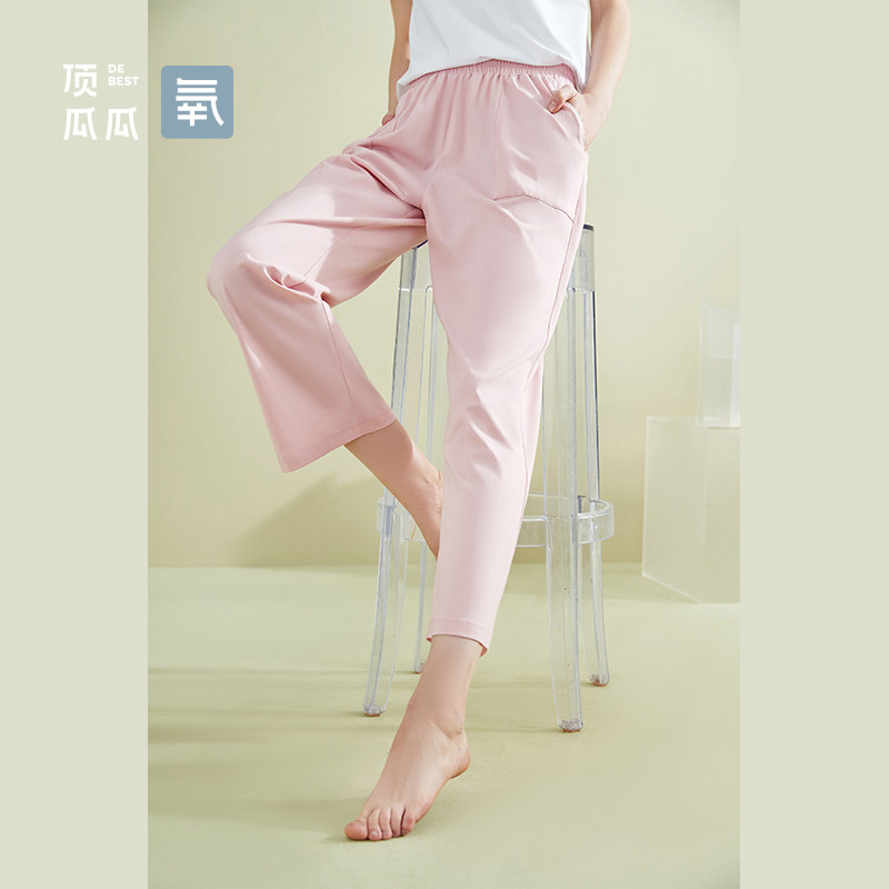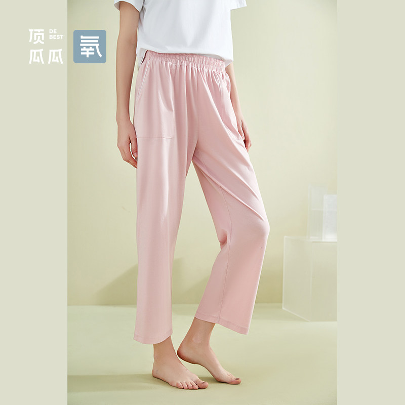 Top melon melon Ice Oxygen Cotton Spring Fall Sleeping Pants Can Outwear Pure Cotton Single Pants Loose Broadleg Long Pants Top Pip
