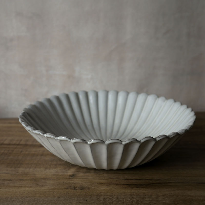 W1962 European single Nordic wind as an old retro black earth high temperature ceramic Chrysanthemum Large Deep Pan Acid Vegetable Fish Bowl