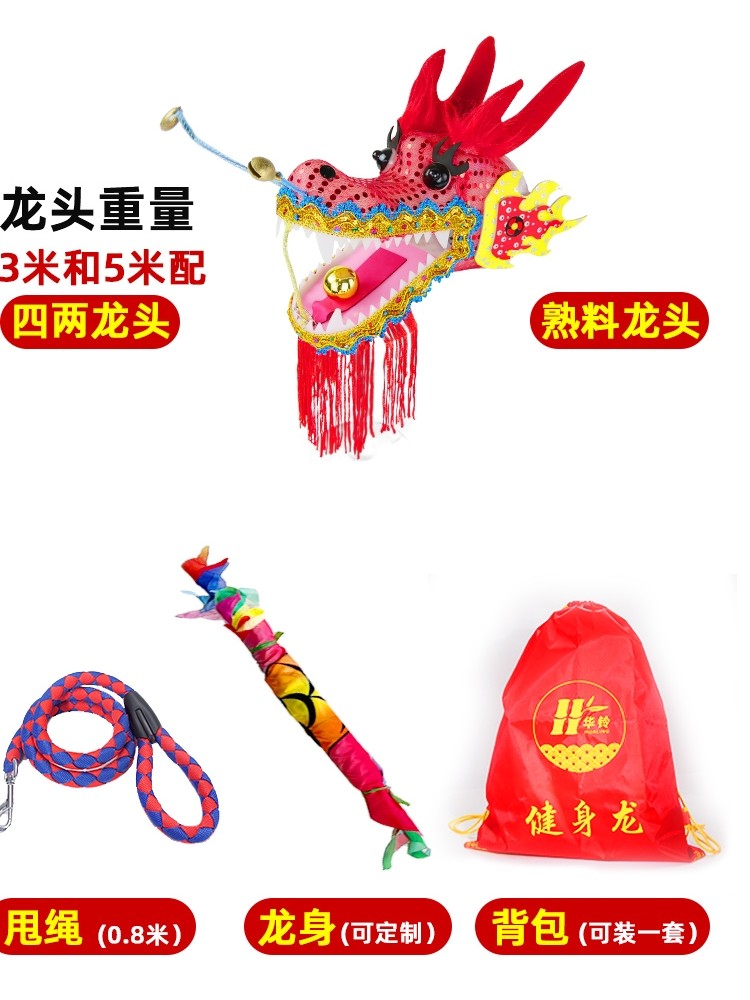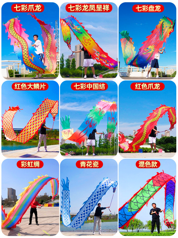 Square dragon dance ribbon middle-aged and elderly beginners to play dragon head dragon dance props satin dragon ribbon adult fitness ribbon